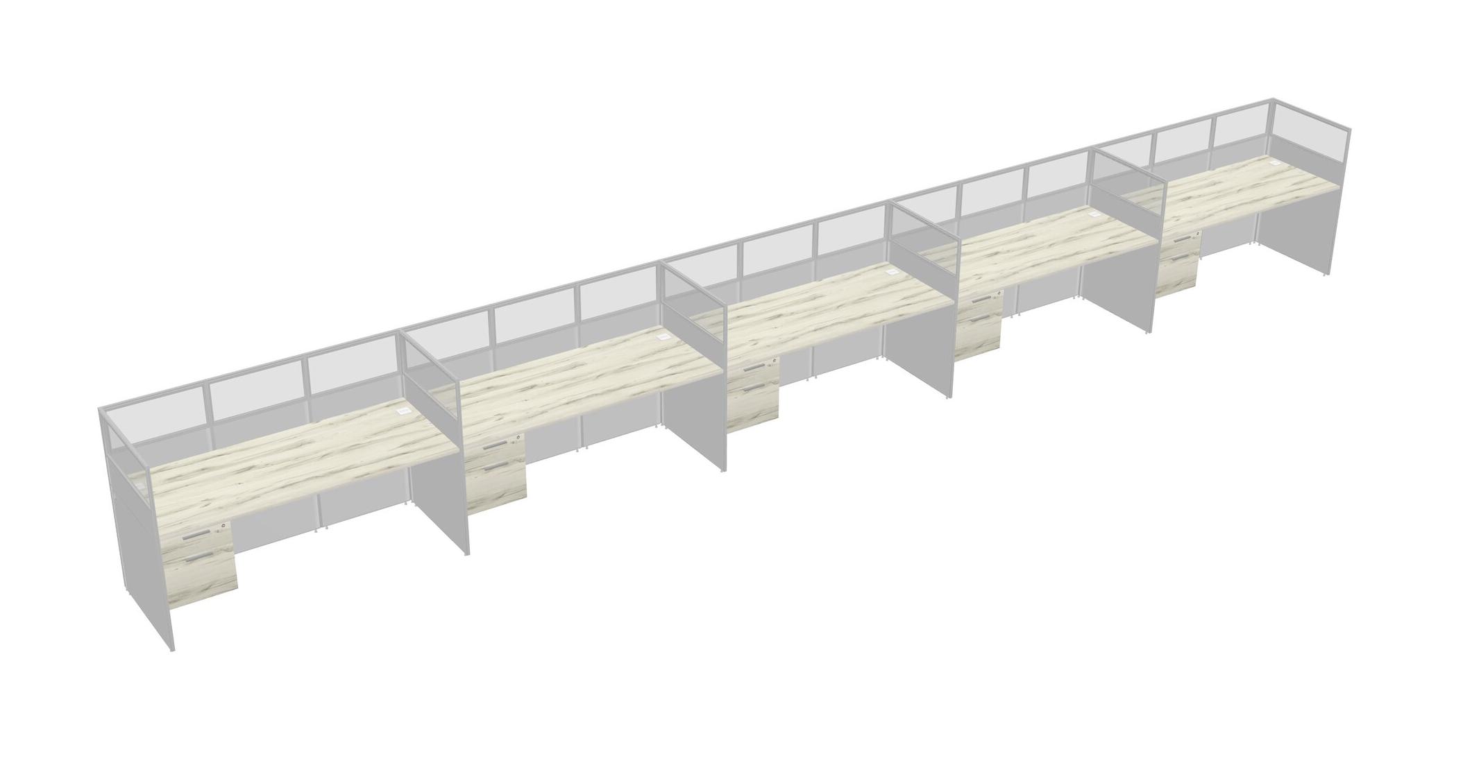 Heinne Holz Shared Rectangular Office Cubicle Panel System With Hanging Drawers For 5 Persons