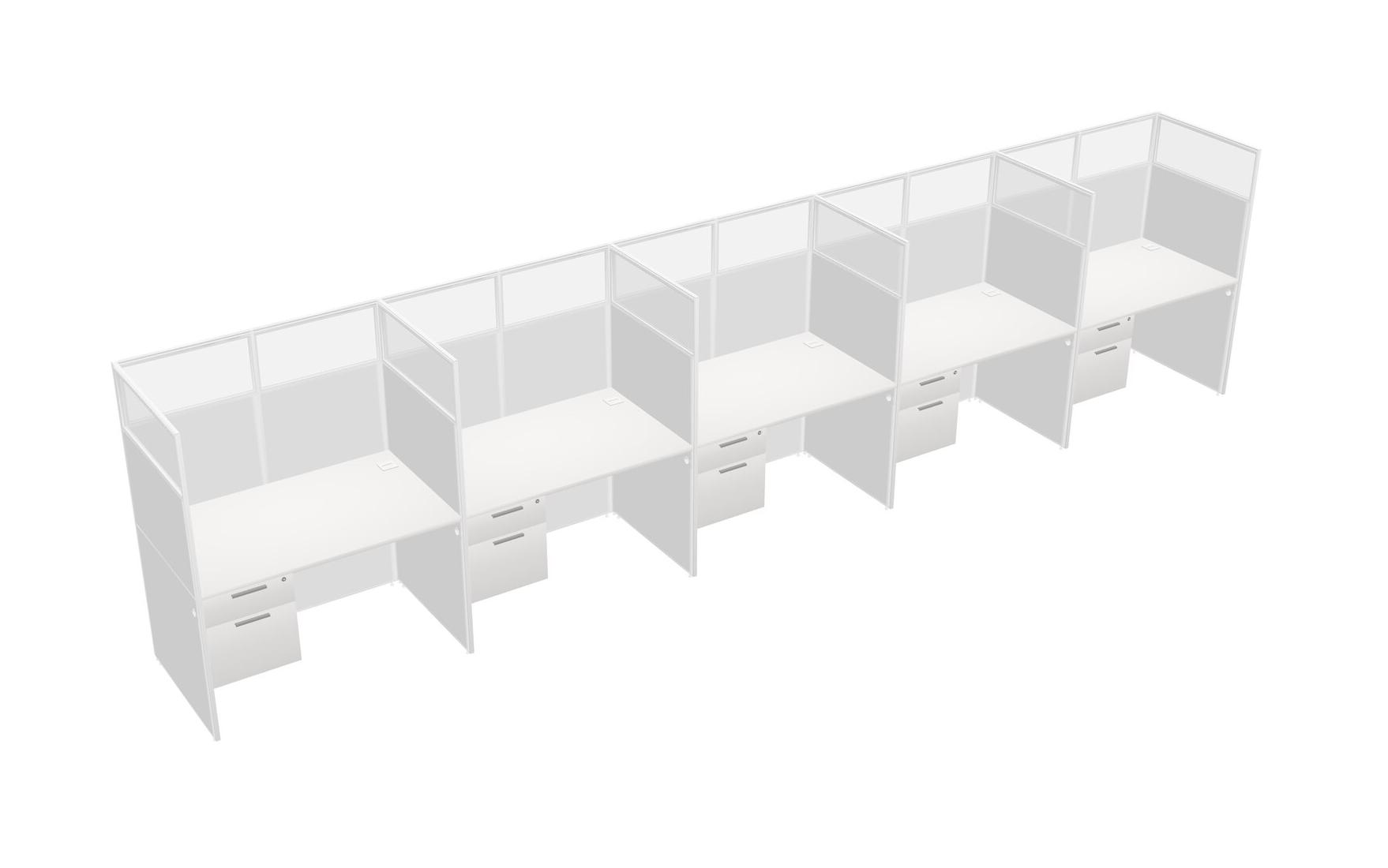 White Shared Rectangular Office Cubicle Panel System With Hanging Drawers For 5 Persons