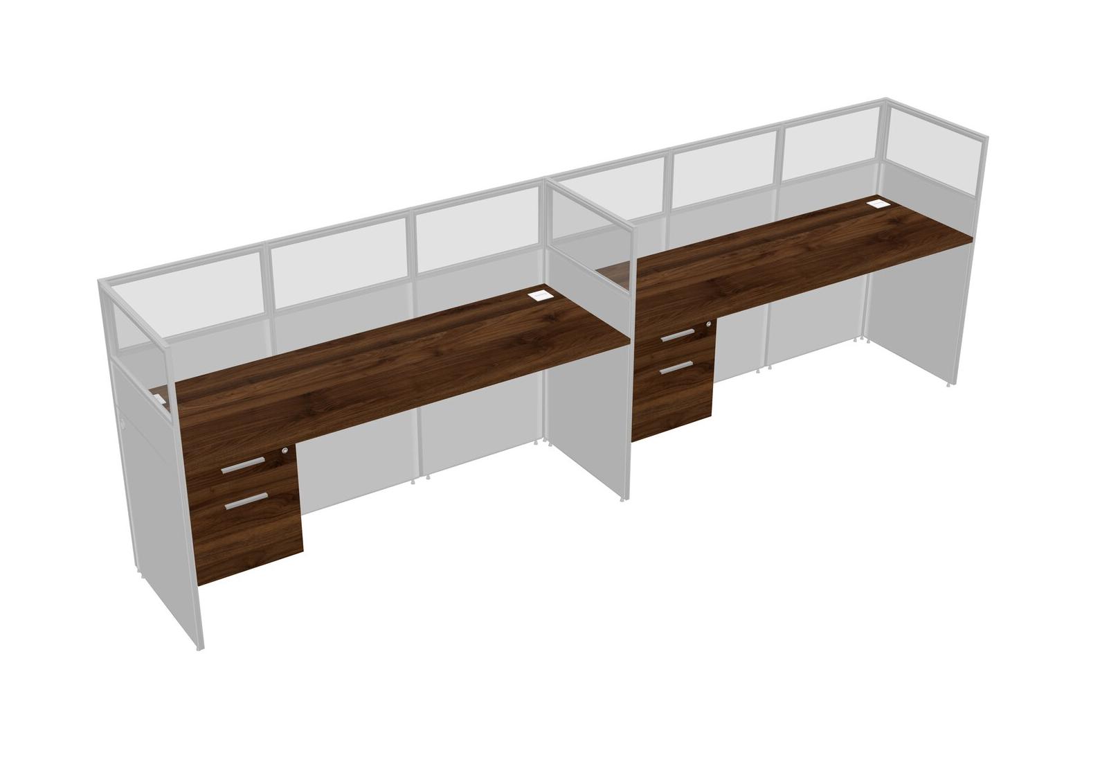 Columbia Walnut Shared Rectangular Office Cubicle Panel System With Hanging Drawers For 2 Persons