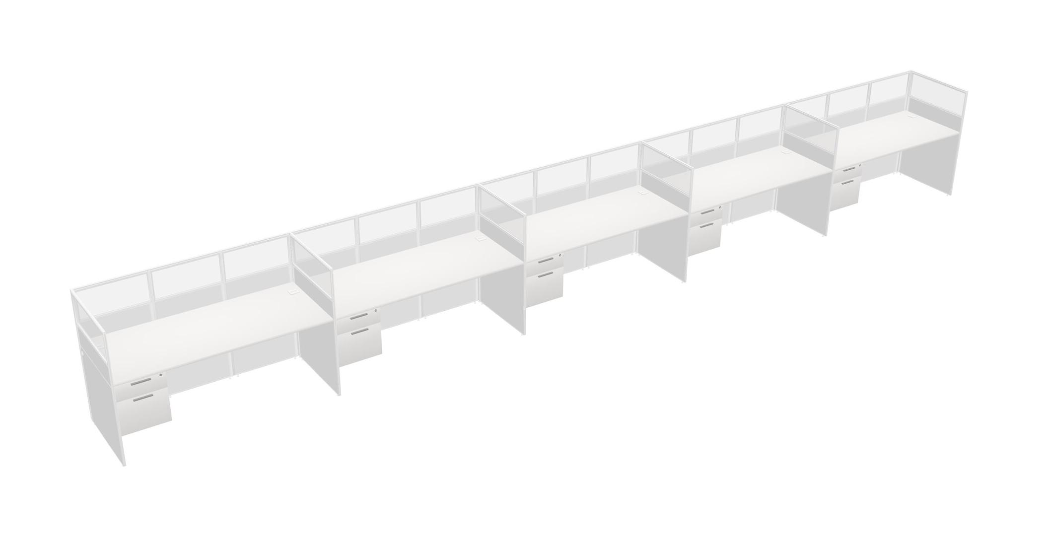 White Shared Rectangular Office Cubicle Panel System With Hanging Drawers For 5 Persons