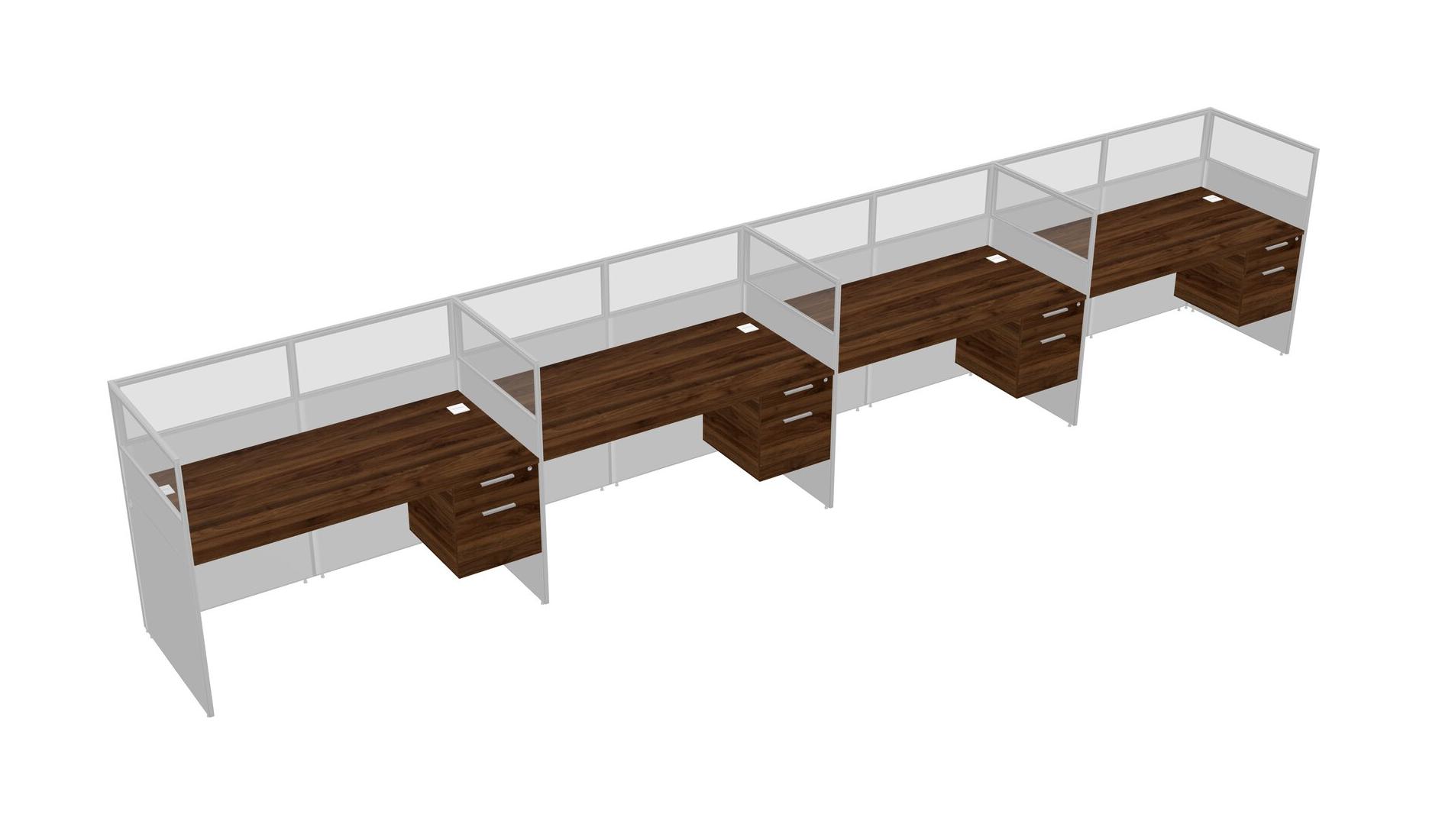 Columbia Walnut Shared Rectangular Office Cubicle Panel System With Hanging Drawers For 4 Persons