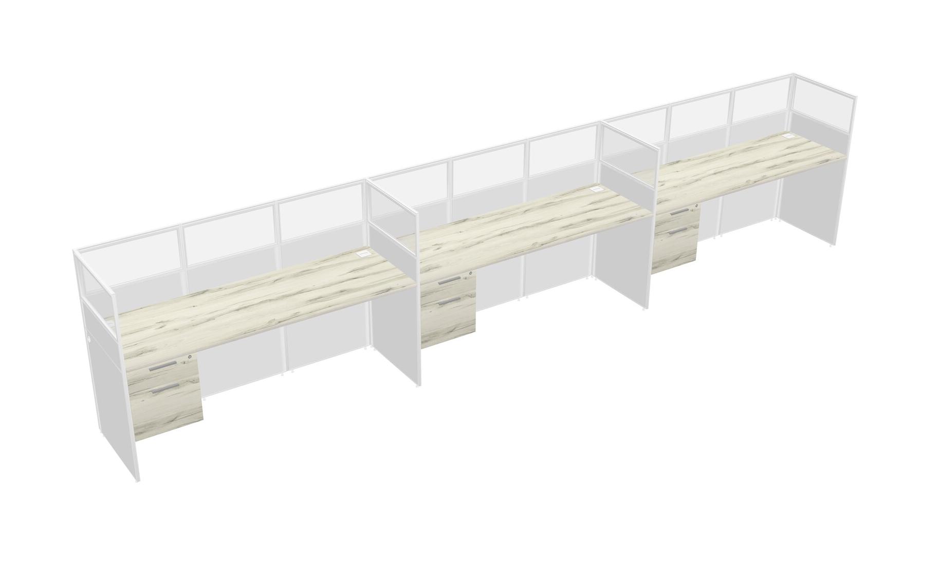 Heinne Holz Shared Rectangular Office Cubicle Panel System With Hanging Drawers For 3 Persons
