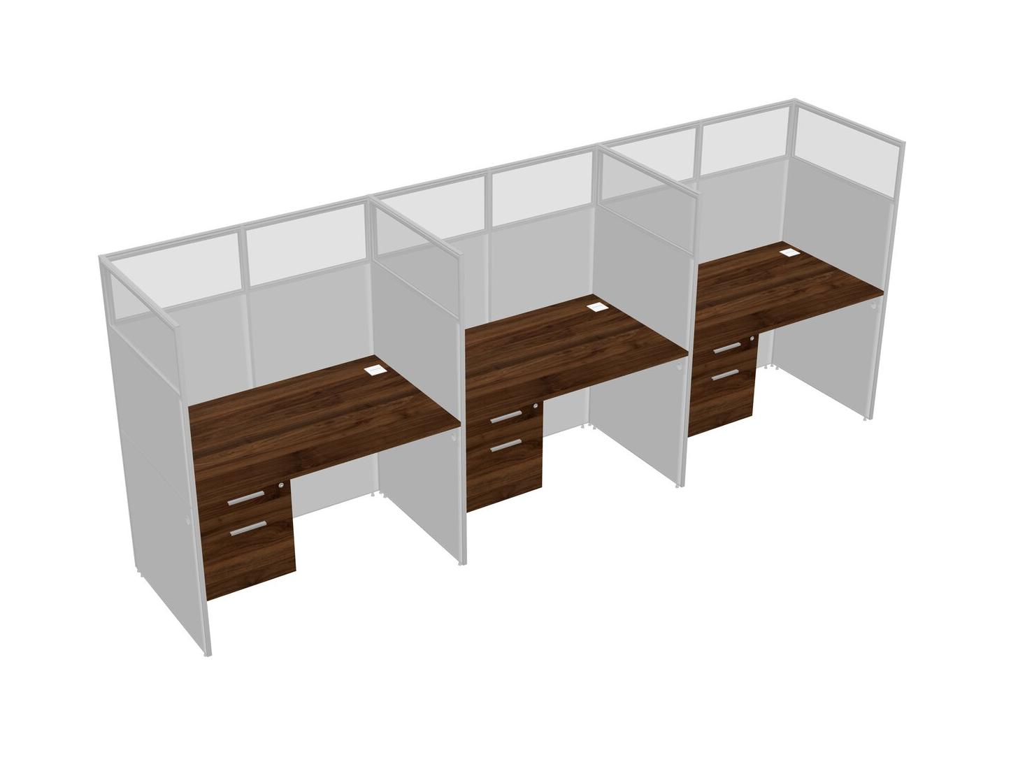 Columbia Walnut Shared Rectangular Office Cubicle Panel System With Hanging Drawers For 3 Persons