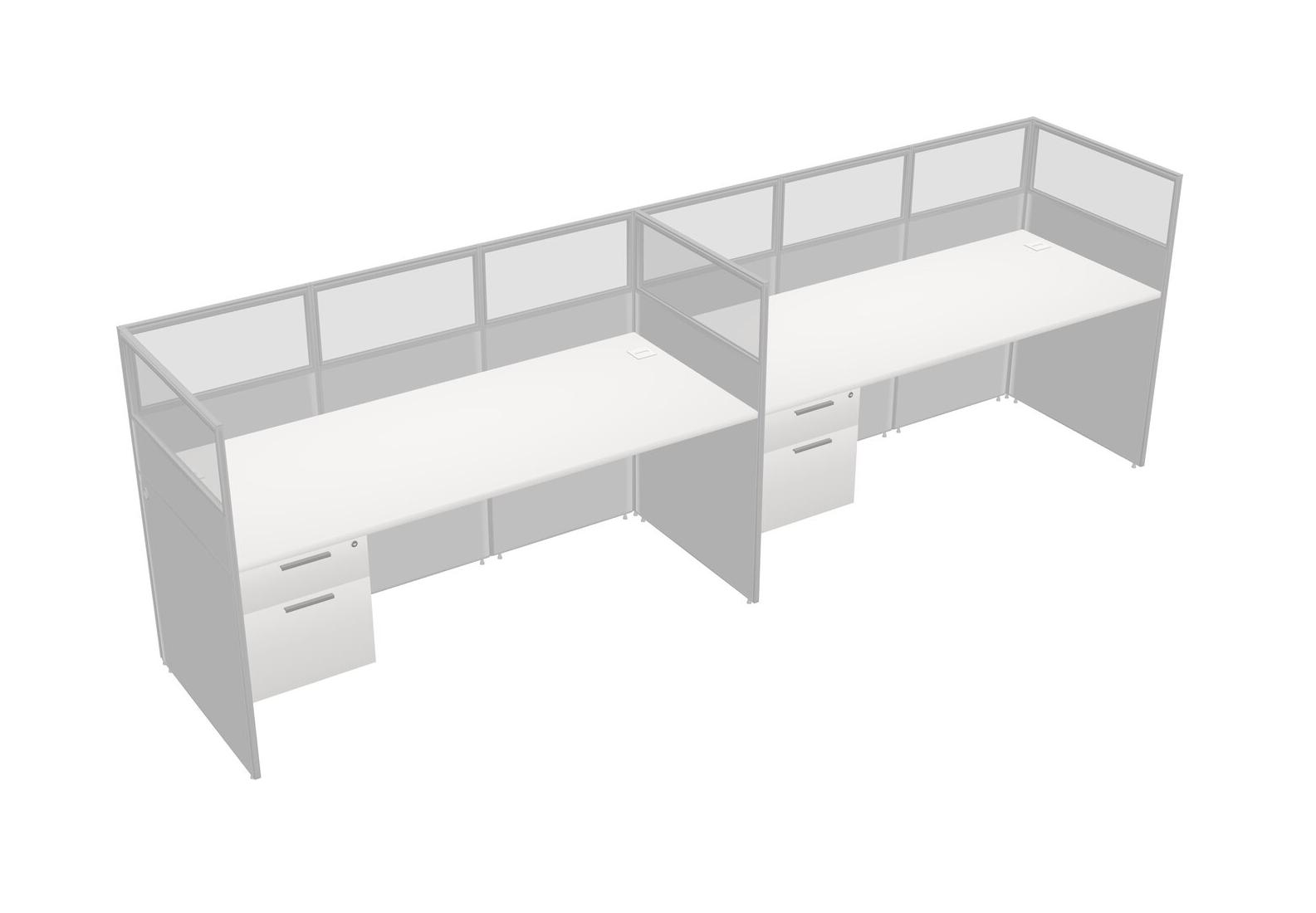 White Shared Rectangular Office Cubicle Panel System With Hanging Drawers For 2 Persons