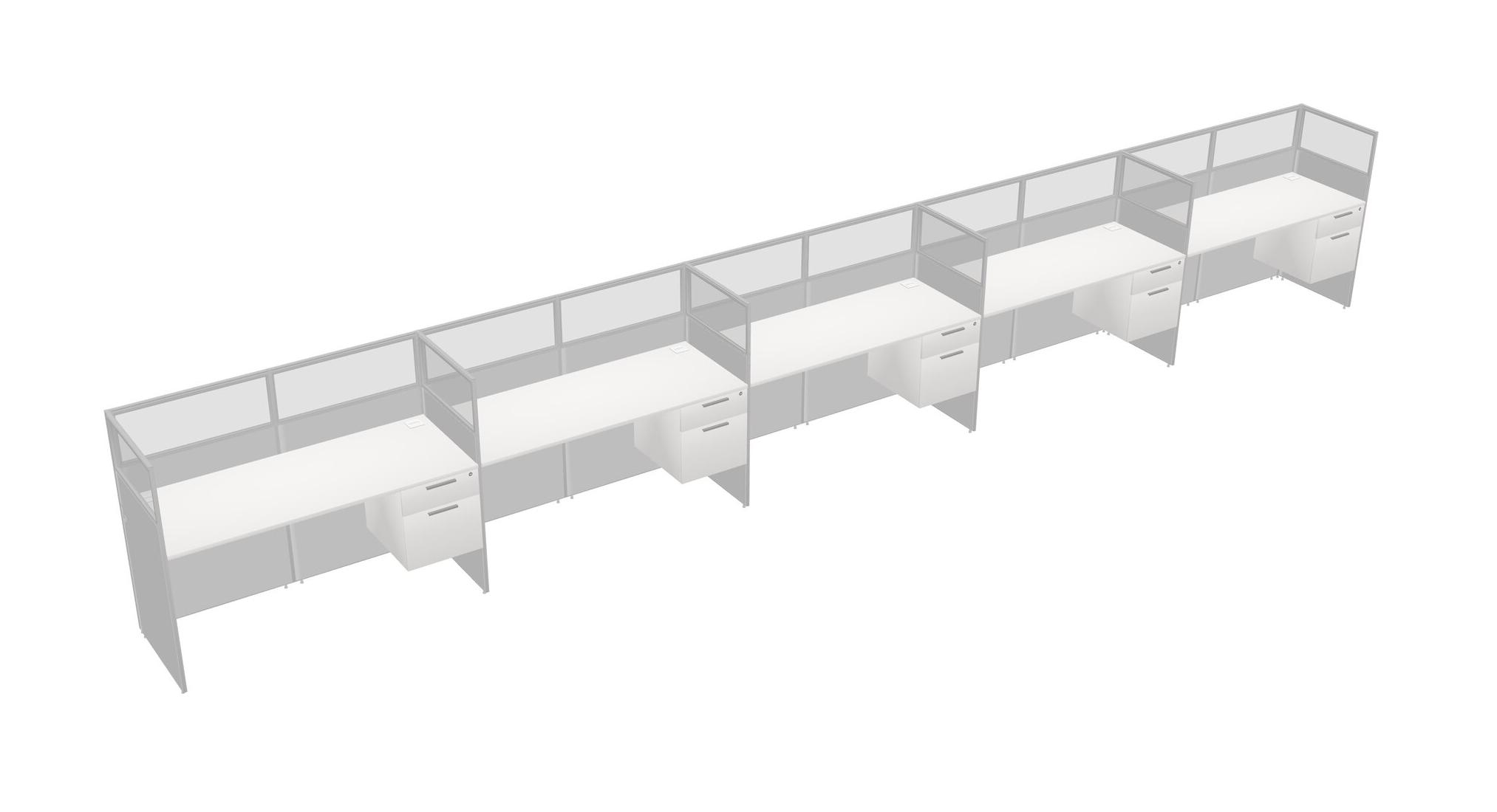 White Shared Rectangular Office Cubicle Panel System With Hanging Drawers For 5 Persons