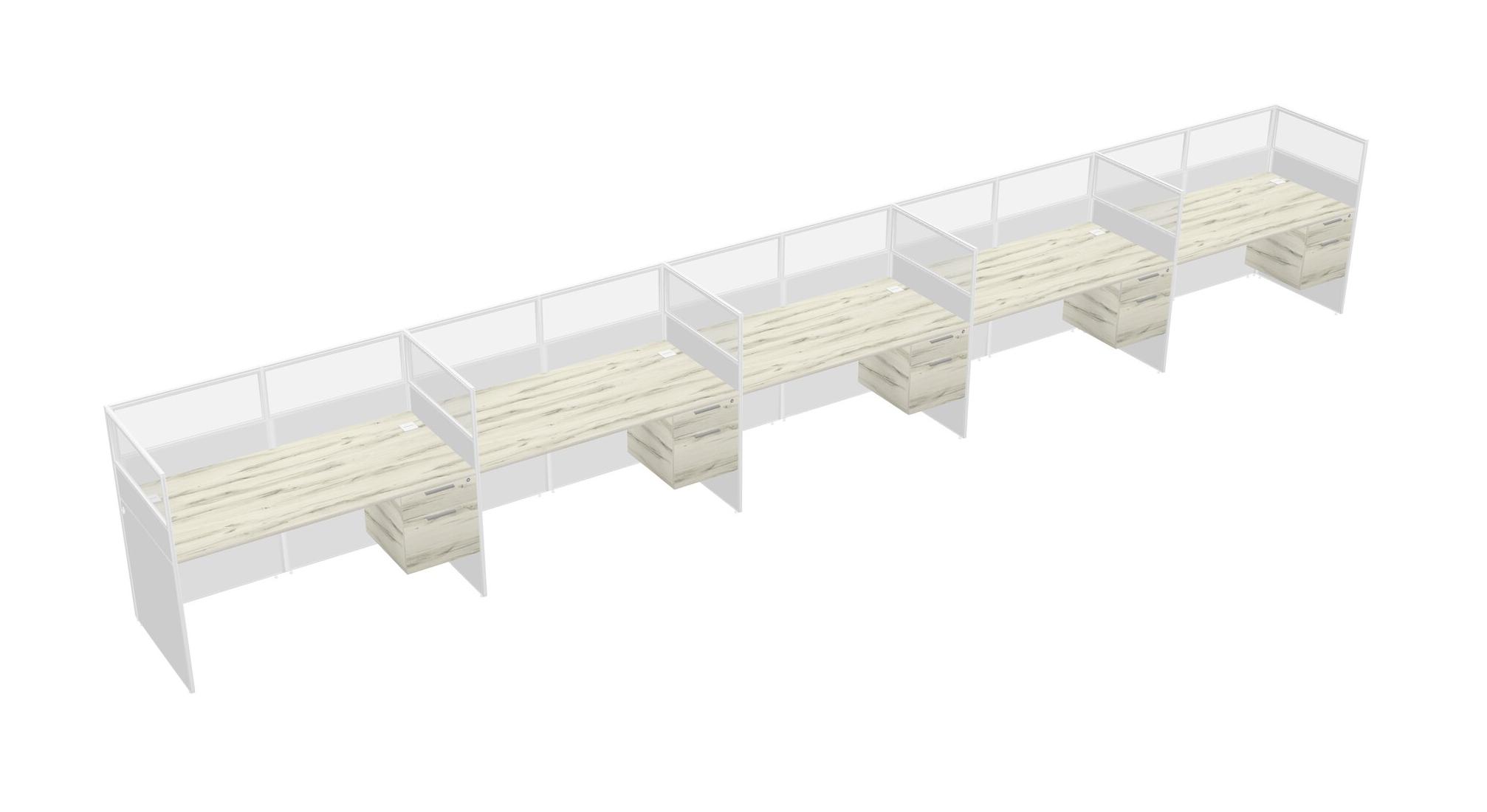 Heinne Holz Shared Rectangular Office Cubicle Panel System With Hanging Drawers For 5 Persons