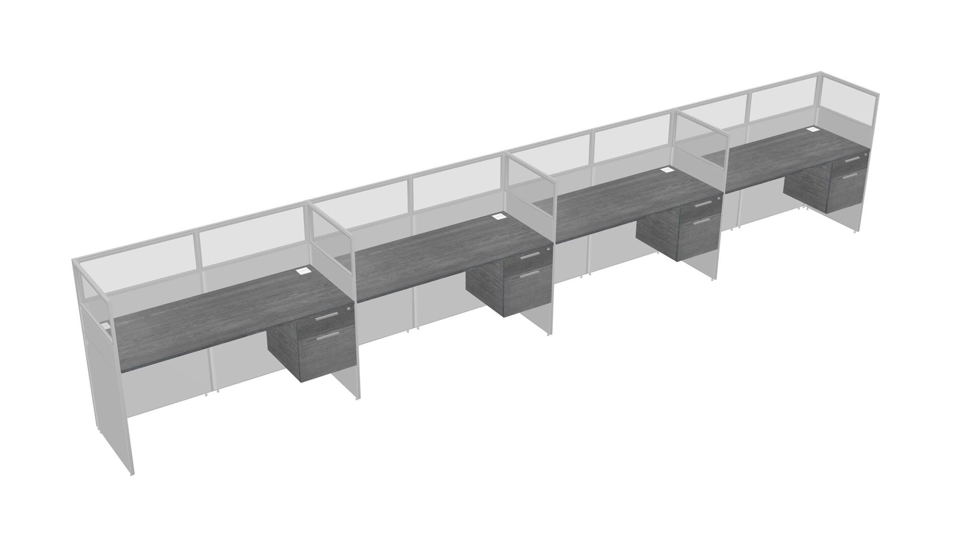 Grey Shared Rectangular Office Cubicle Panel System With Hanging Drawers For 4 Persons