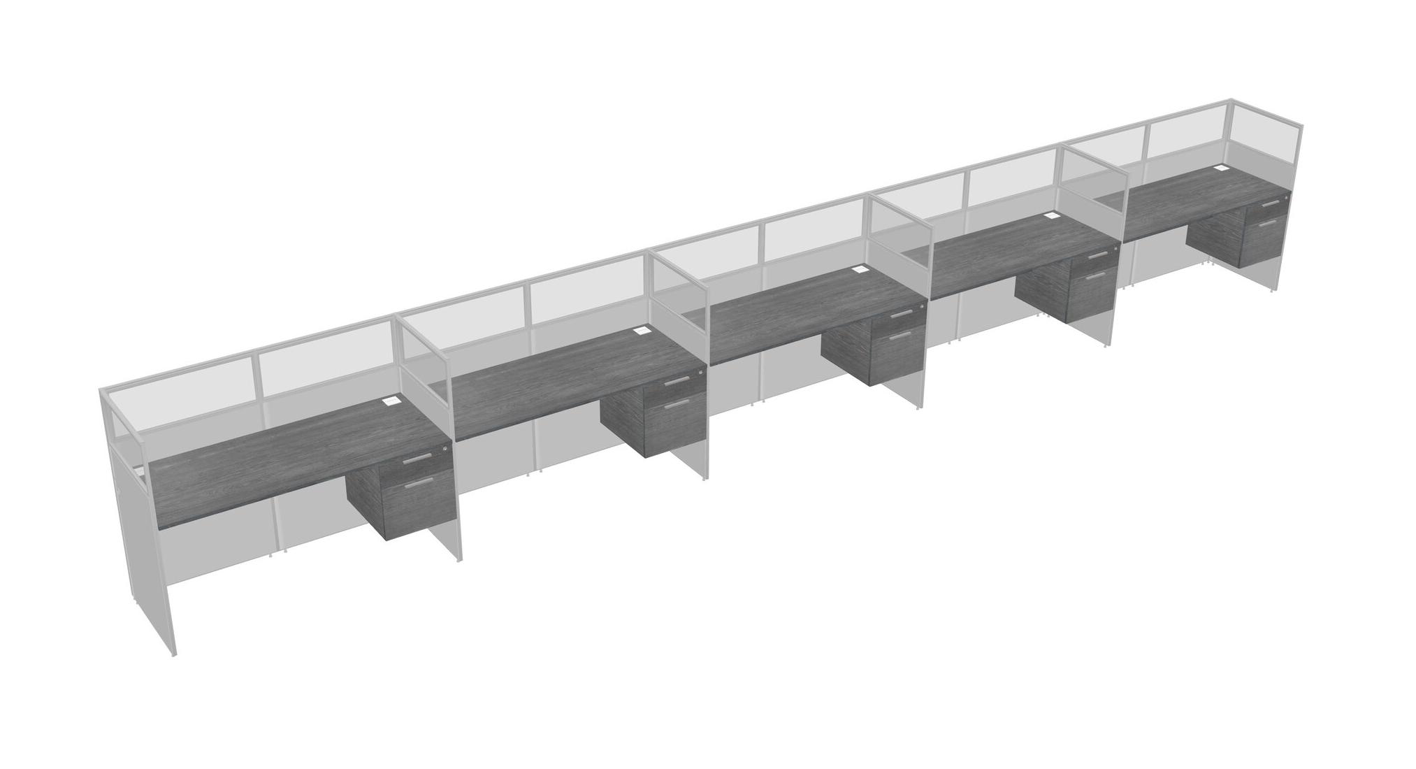 Grey Shared Rectangular Office Cubicle Panel System With Hanging Drawers For 5 Persons