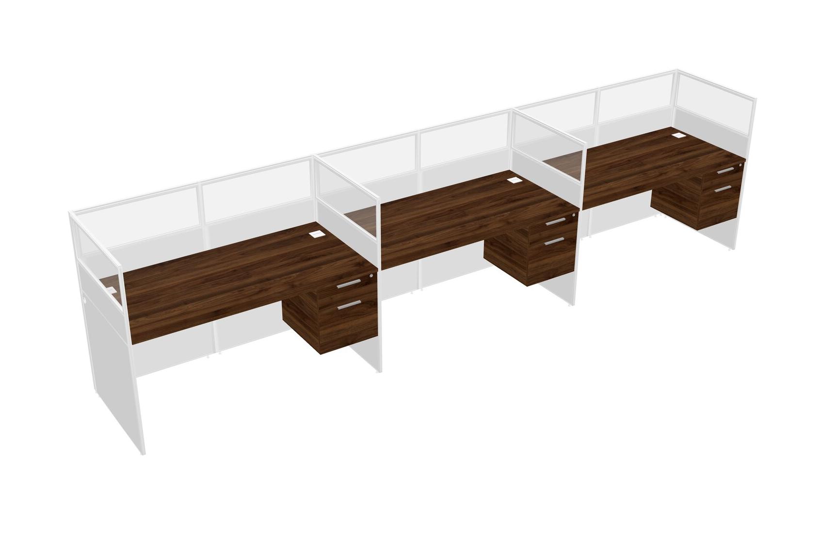 Columbia Walnut Shared Rectangular Office Cubicle Panel System With Hanging Drawers For 3 Persons