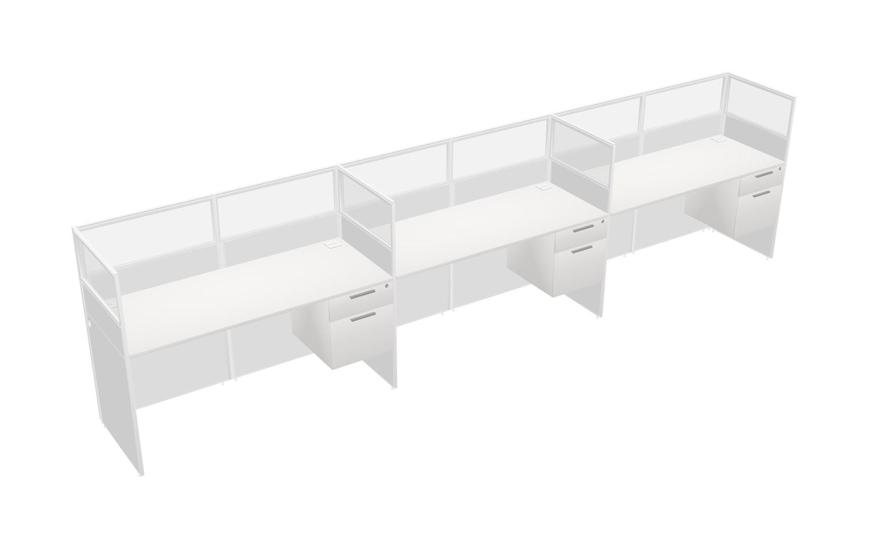 White Shared Rectangular Office Cubicle Panel System With Hanging Drawers For 3 Persons