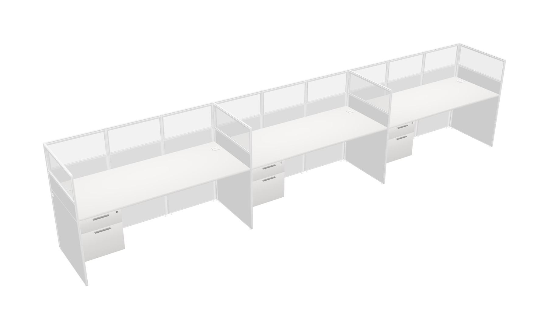 White Shared Rectangular Office Cubicle Panel System With Hanging Drawers For 3 Persons