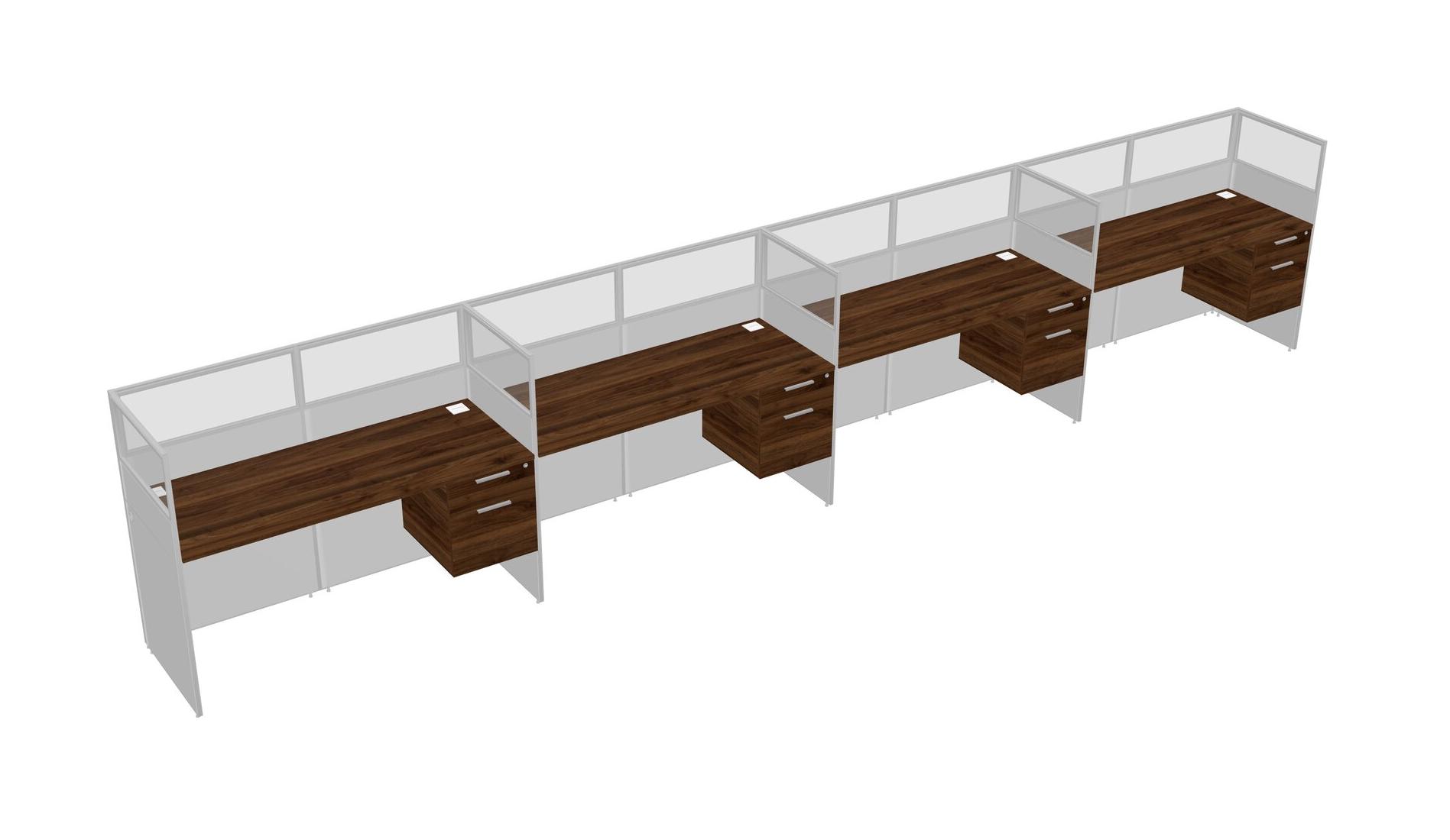 Columbia Walnut Shared Rectangular Office Cubicle Panel System With Hanging Drawers For 4 Persons