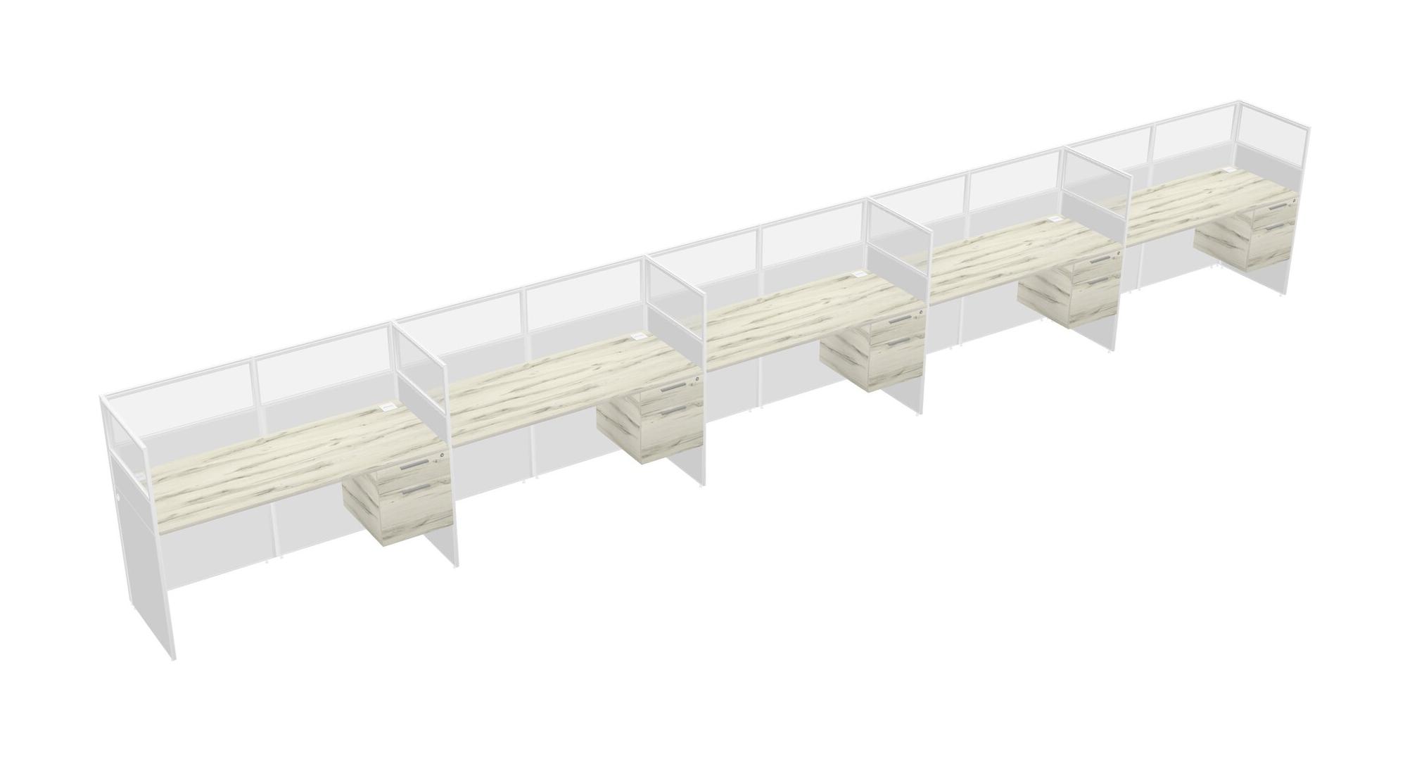 Heinne Holz Shared Rectangular Office Cubicle Panel System With Hanging Drawers For 5 Persons