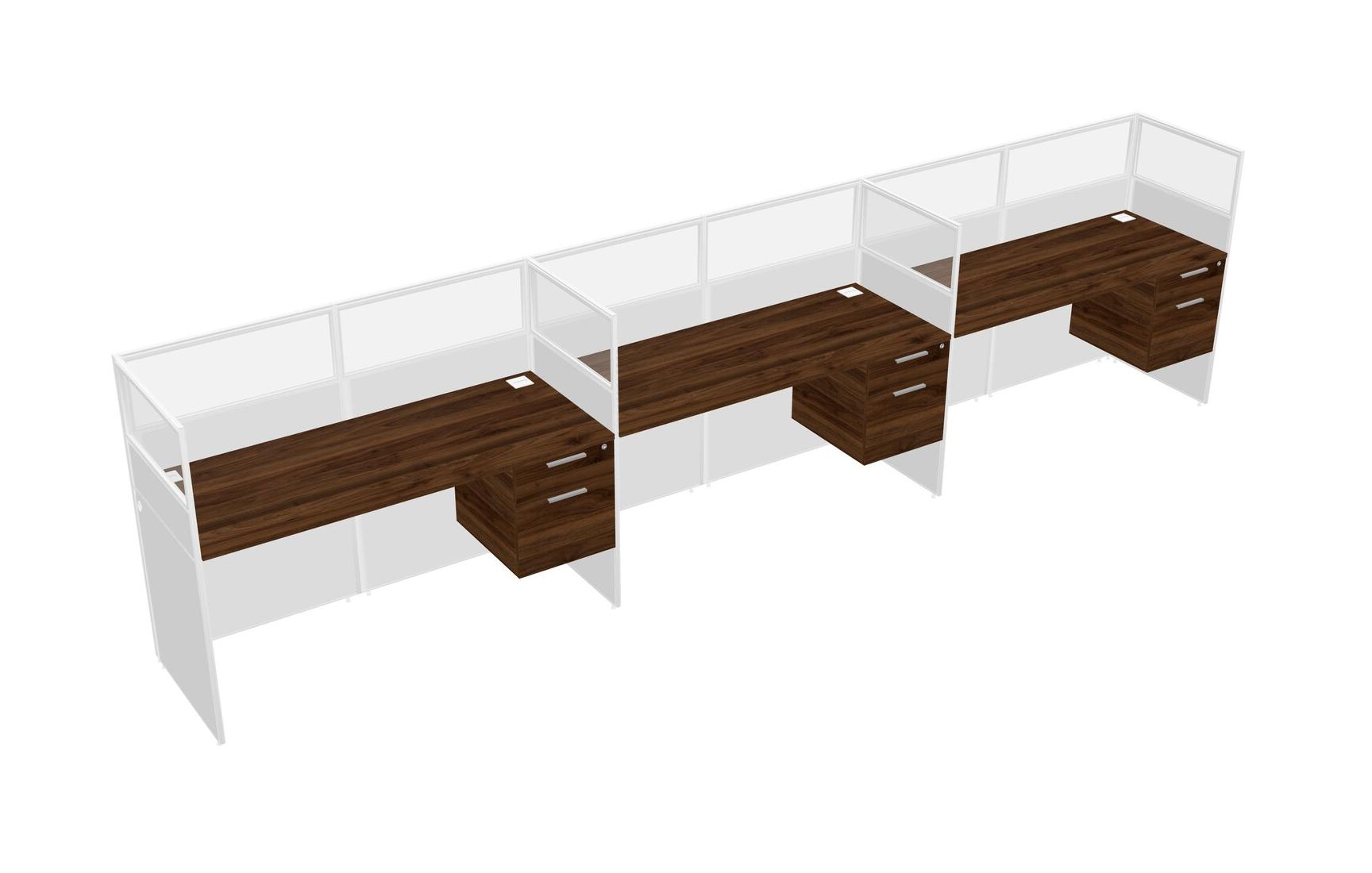 Columbia Walnut Shared Rectangular Office Cubicle Panel System With Hanging Drawers For 3 Persons