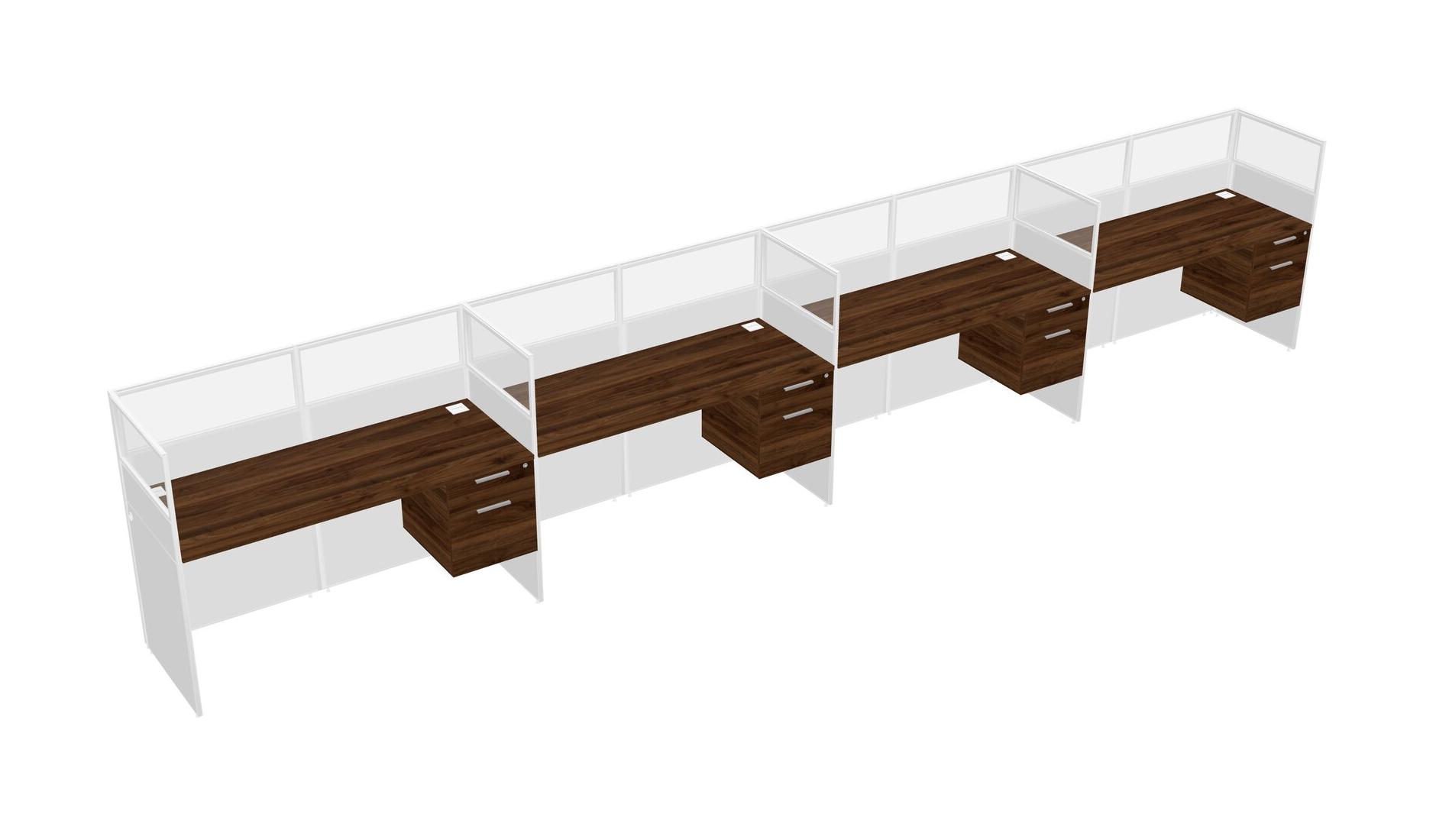 Columbia Walnut Shared Rectangular Office Cubicle Panel System With Hanging Drawers For 4 Persons