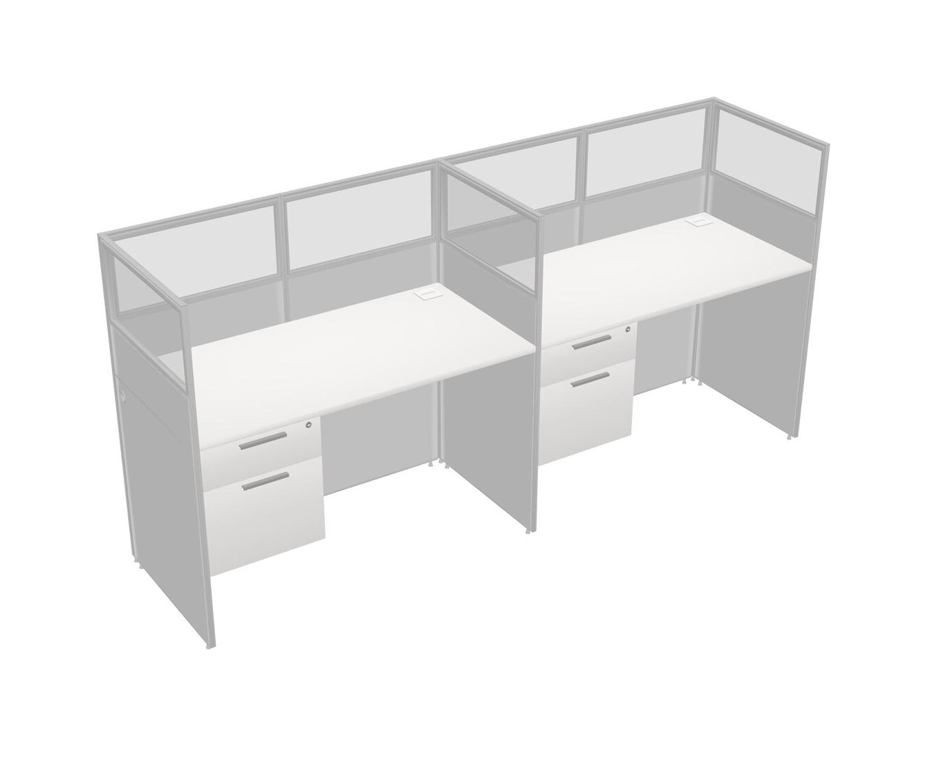 White Shared Rectangular Office Cubicle Panel System With Hanging Drawers For 2 Persons