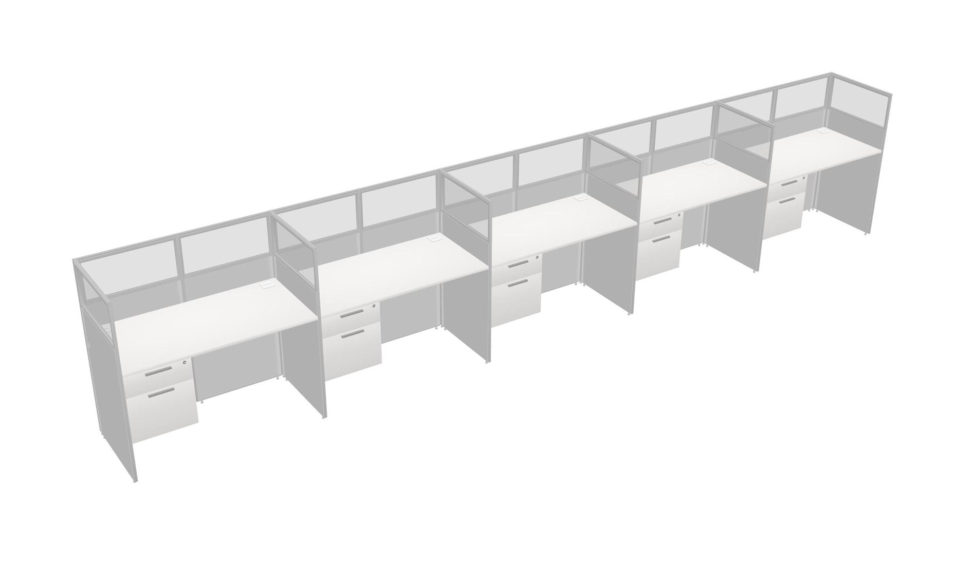 White Shared Rectangular Office Cubicle Panel System With Hanging Drawers For 5 Persons