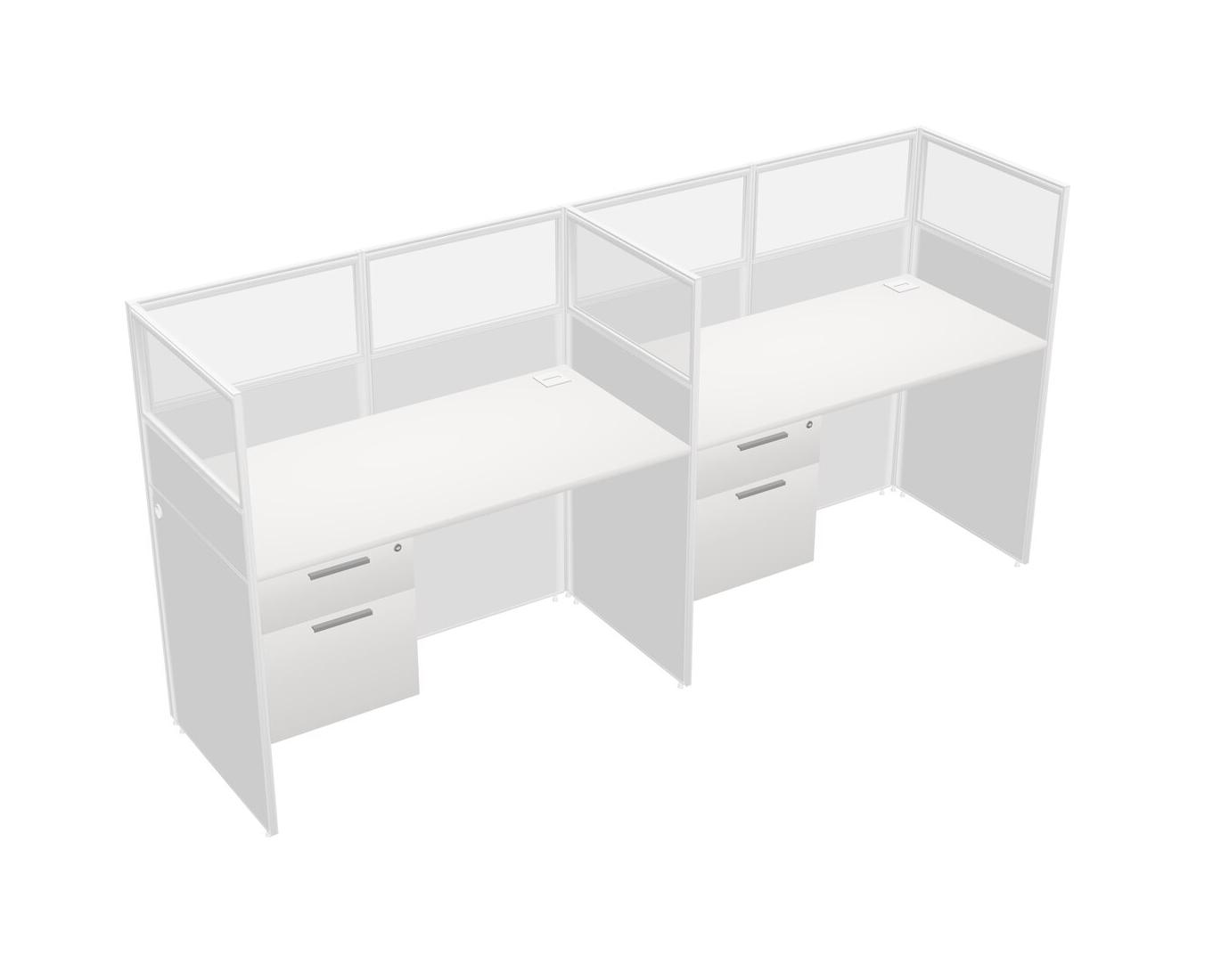 White Shared Rectangular Office Cubicle Panel System With Hanging Drawers For 2 Persons