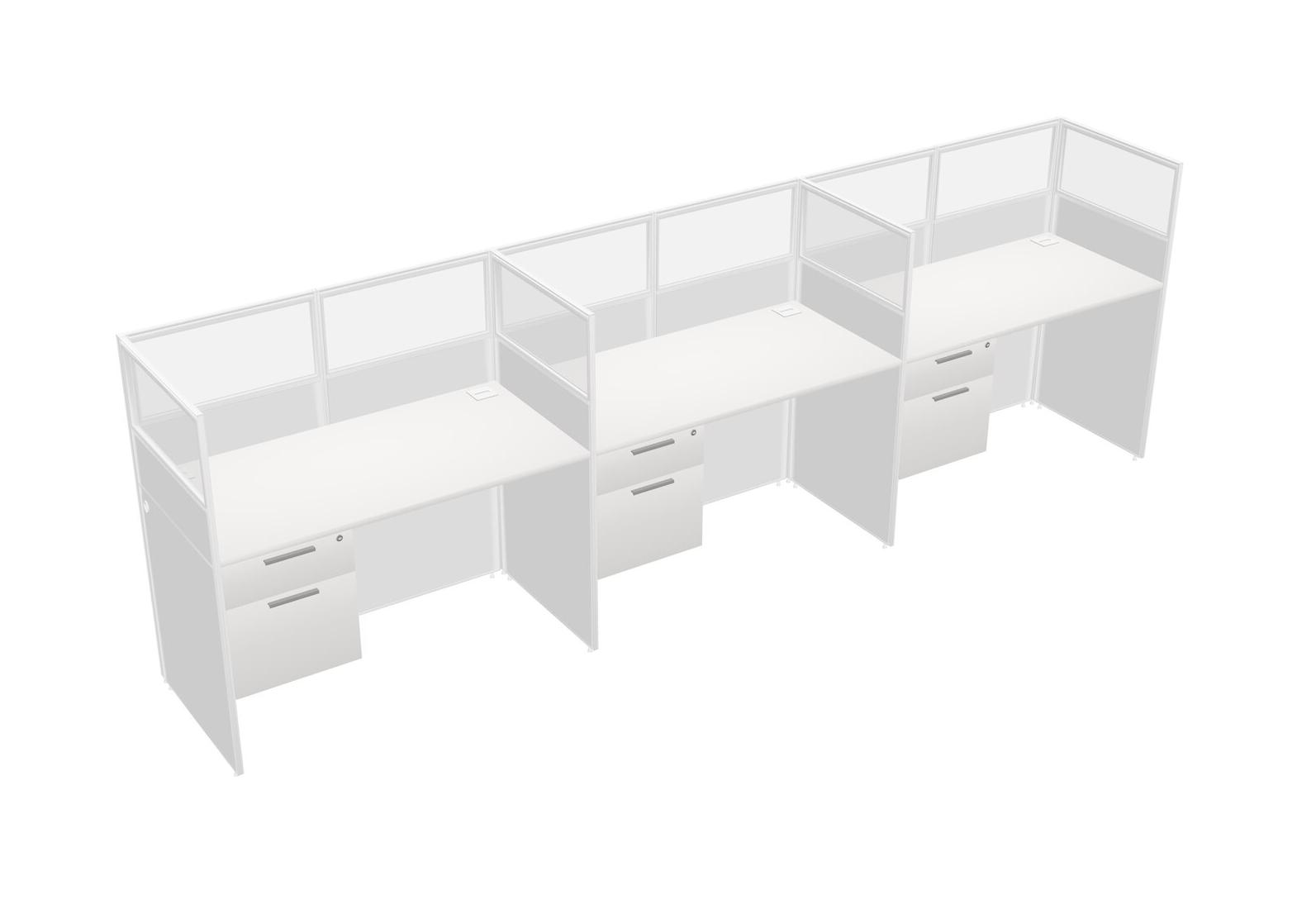 White Shared Rectangular Office Cubicle Panel System With Hanging Drawers For 3 Persons