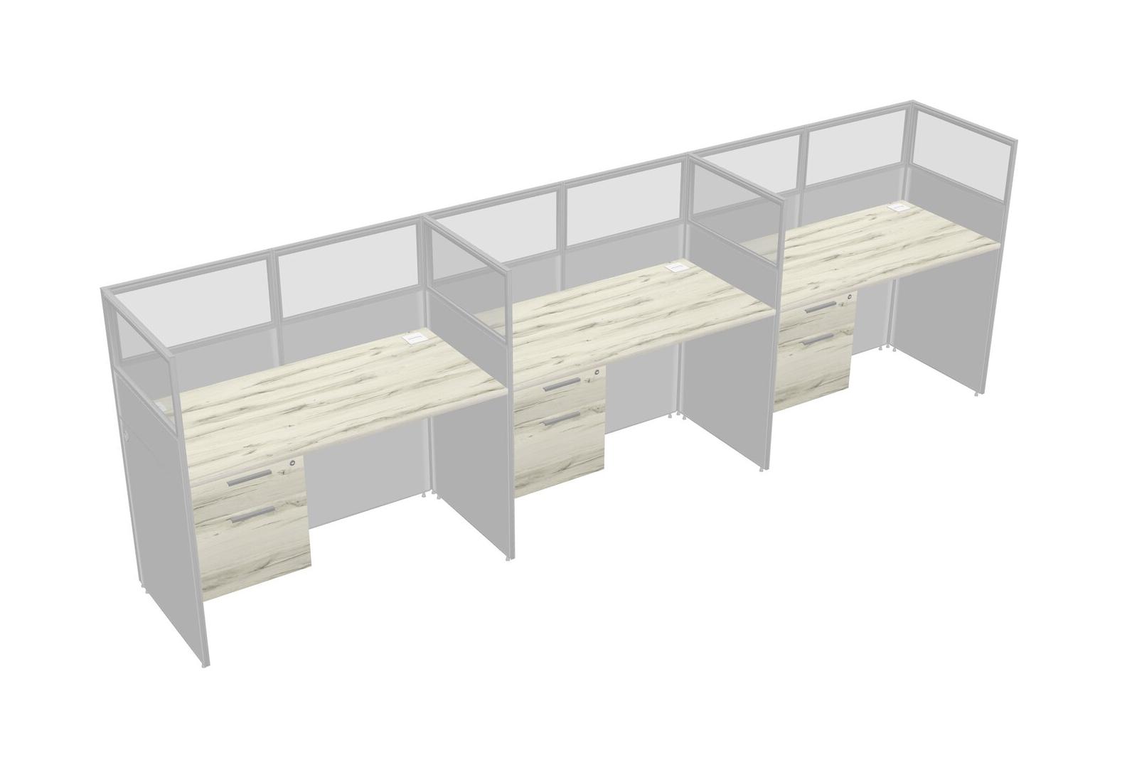 Heinne Holz Shared Rectangular Office Cubicle Panel System With Hanging Drawers For 3 Persons