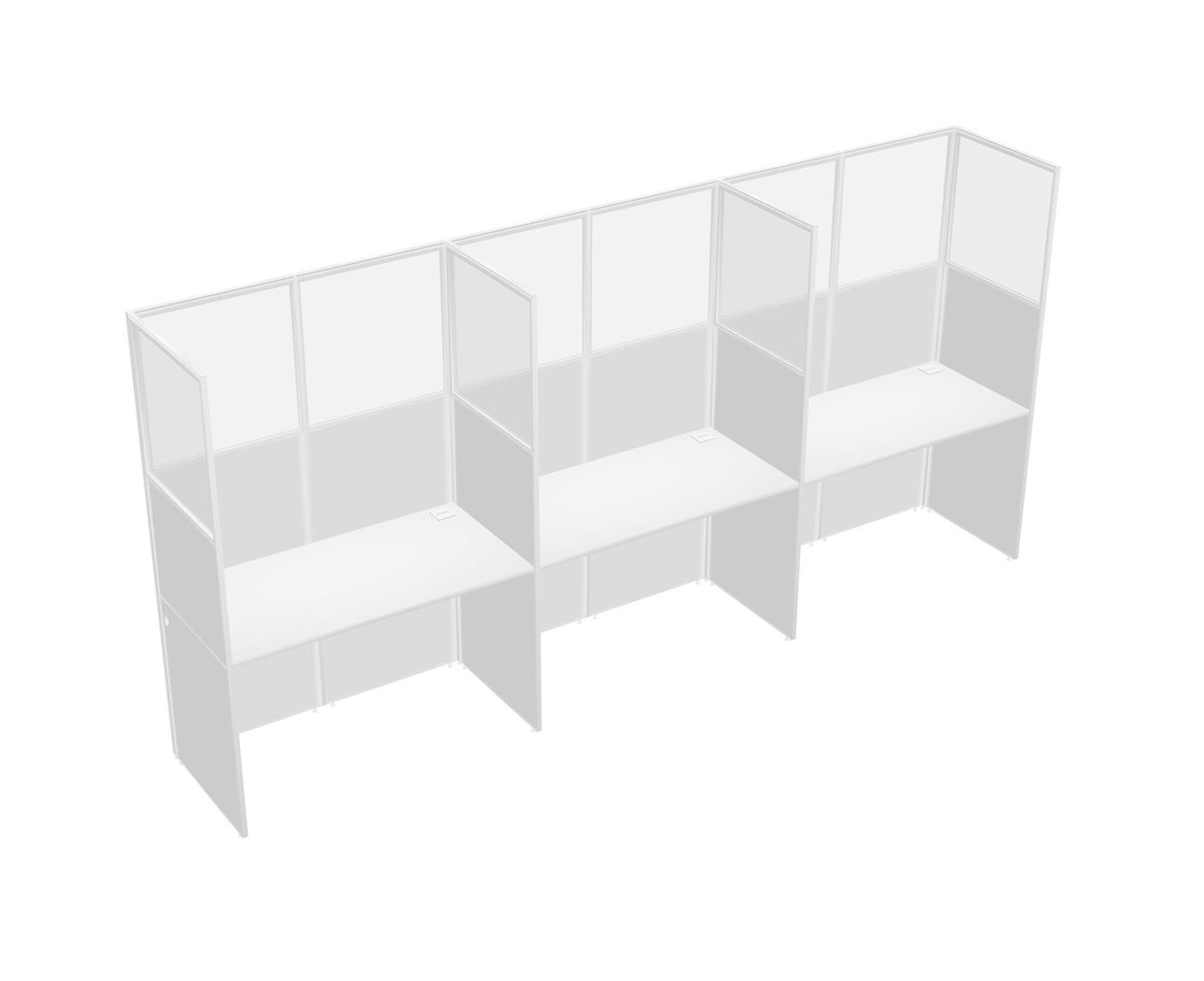 White Shared Rectangular Office Cubicle Panel System For 3 Persons
