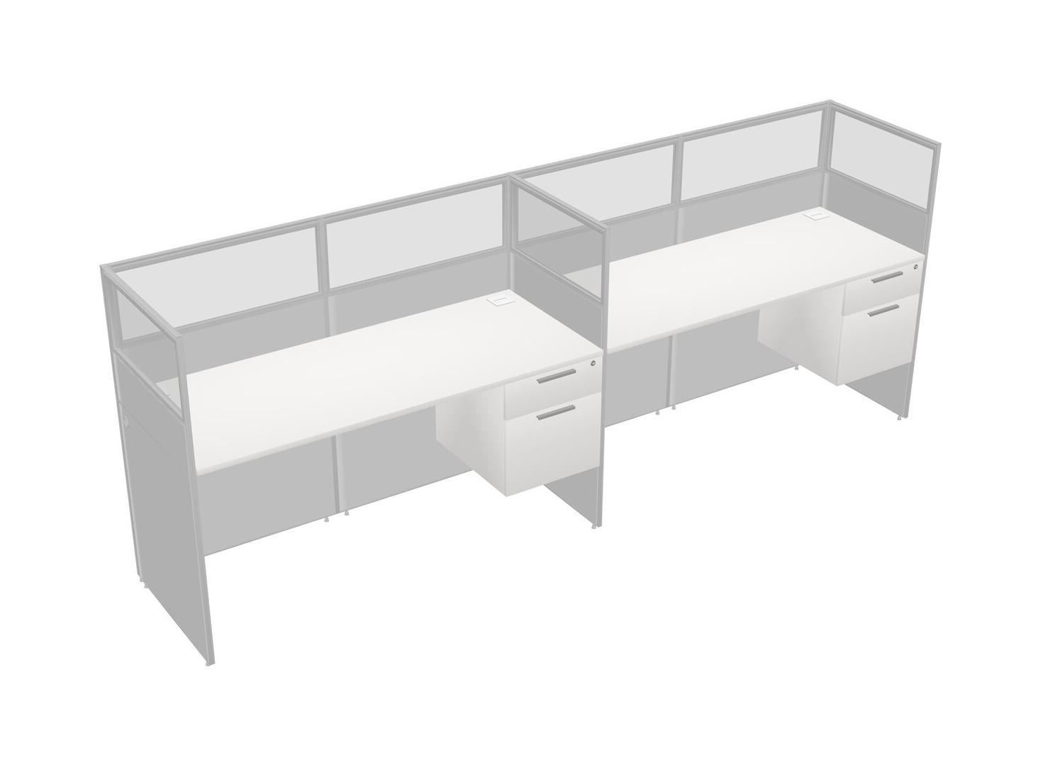 White Shared Rectangular Office Cubicle Panel System With Hanging Drawers For 2 Persons