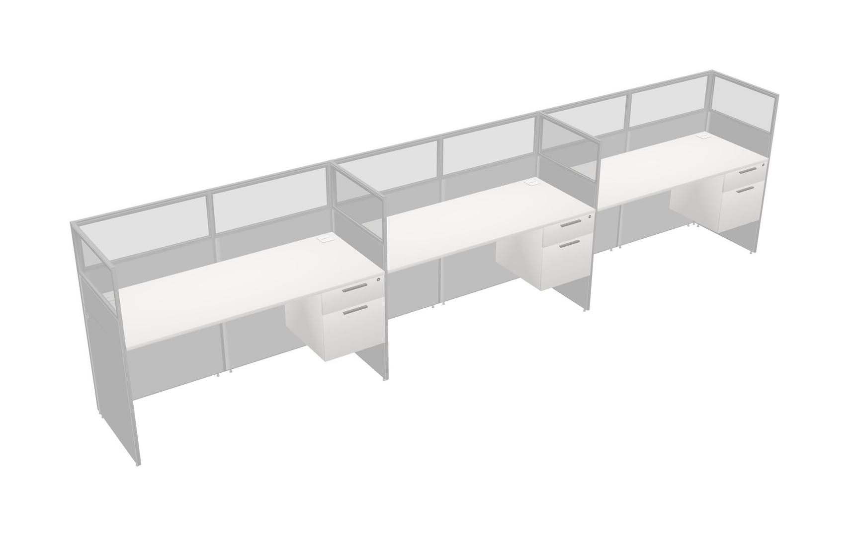 White Shared Rectangular Office Cubicle Panel System With Hanging Drawers For 3 Persons