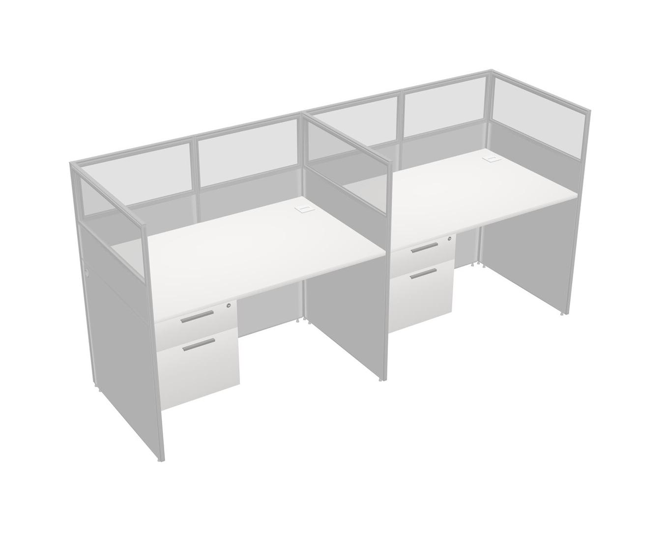 White Shared Rectangular Office Cubicle Panel System With Hanging Drawers For 2 Persons