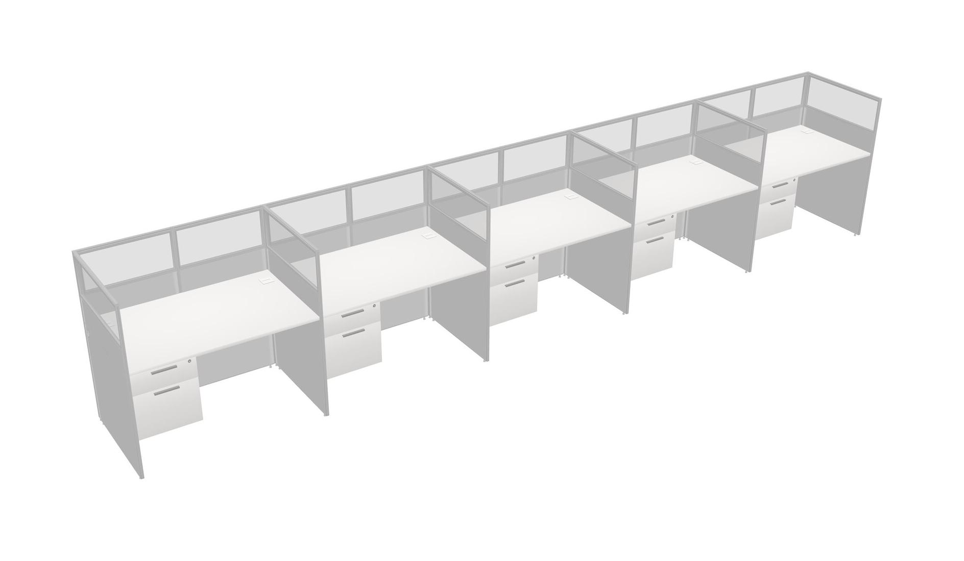 White Shared Rectangular Office Cubicle Panel System With Hanging Drawers For 5 Persons