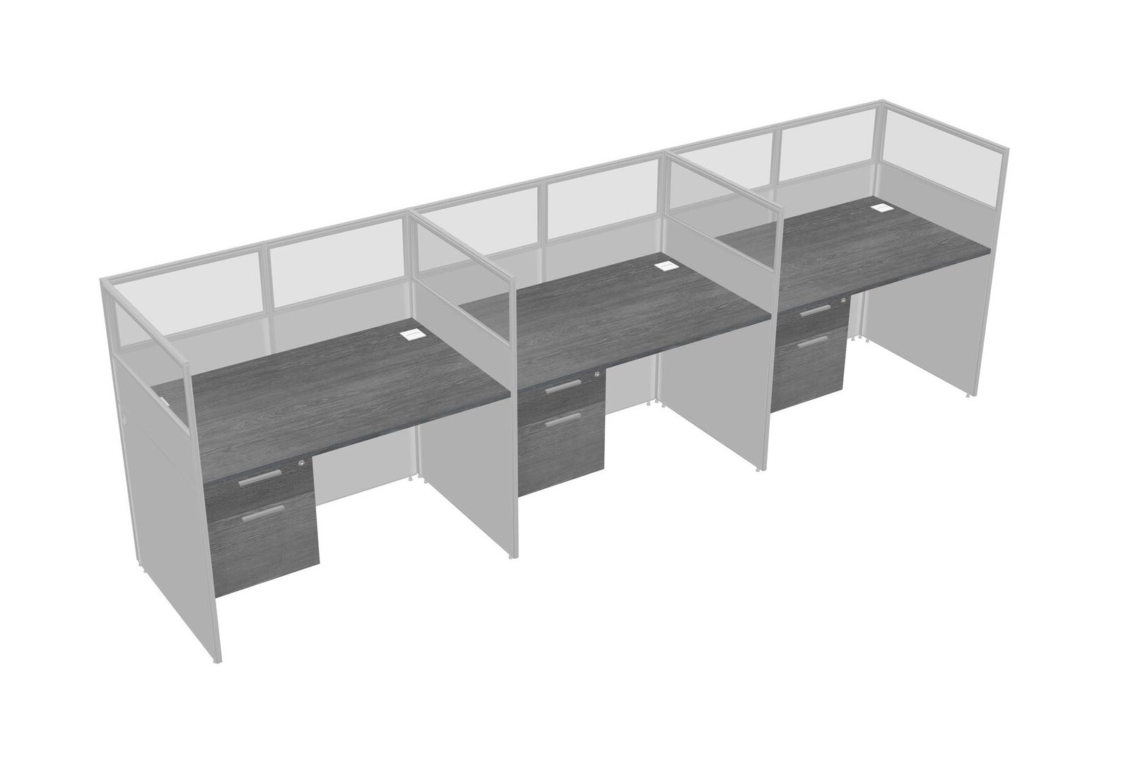 Grey Shared Rectangular Office Cubicle Panel System With Hanging Drawers For 3 Persons