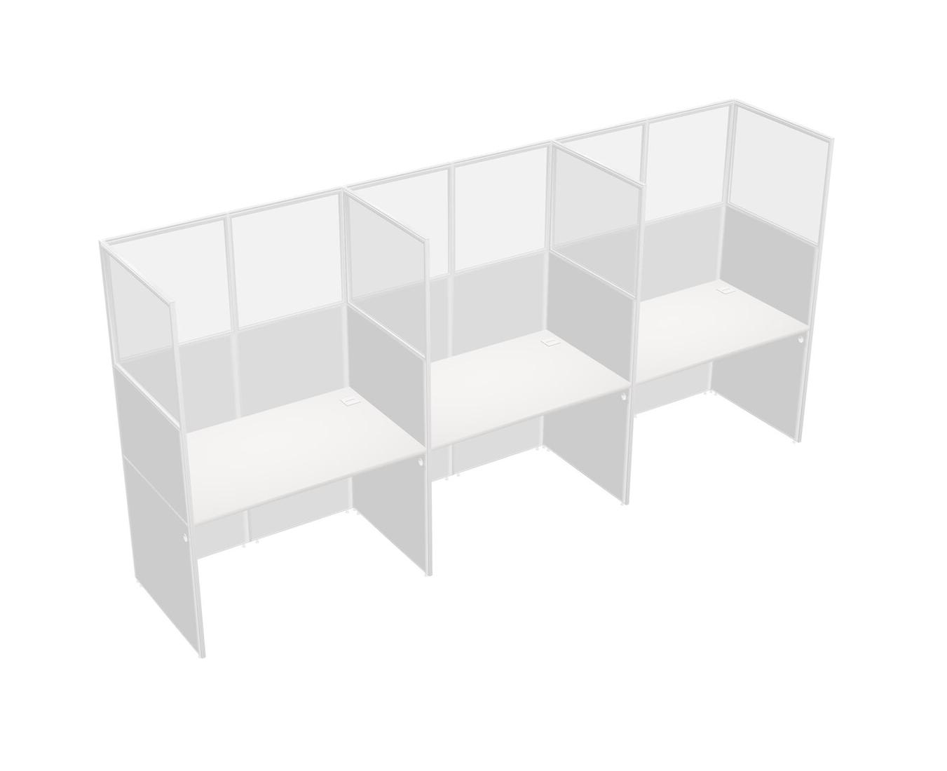 White Shared Rectangular Office Cubicle Panel System For 3 Persons