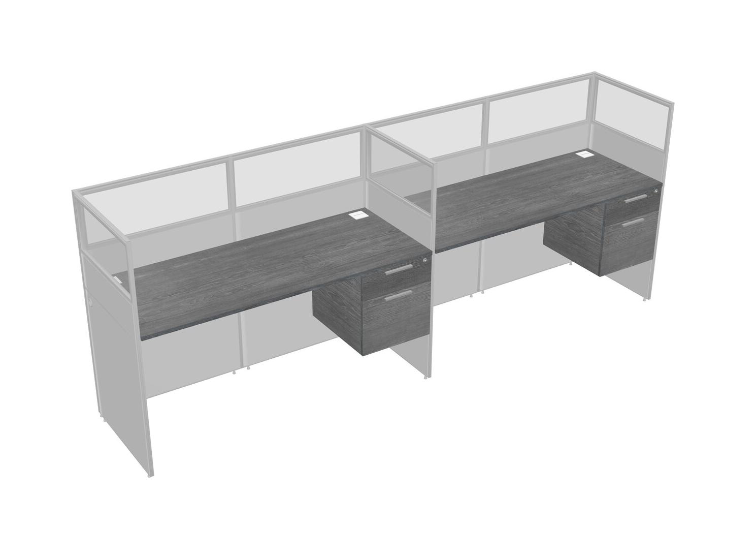 Grey Shared Rectangular Office Cubicle Panel System With Hanging Drawers For 2 Persons