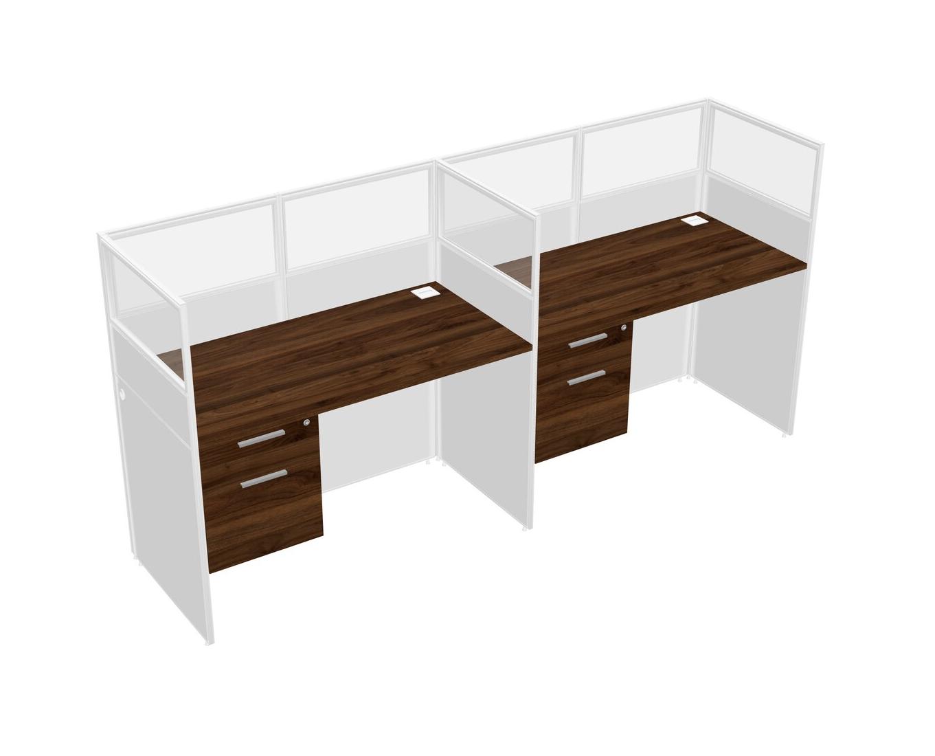 Columbia Walnut Shared Rectangular Office Cubicle Panel System With Hanging Drawers For 2 Persons