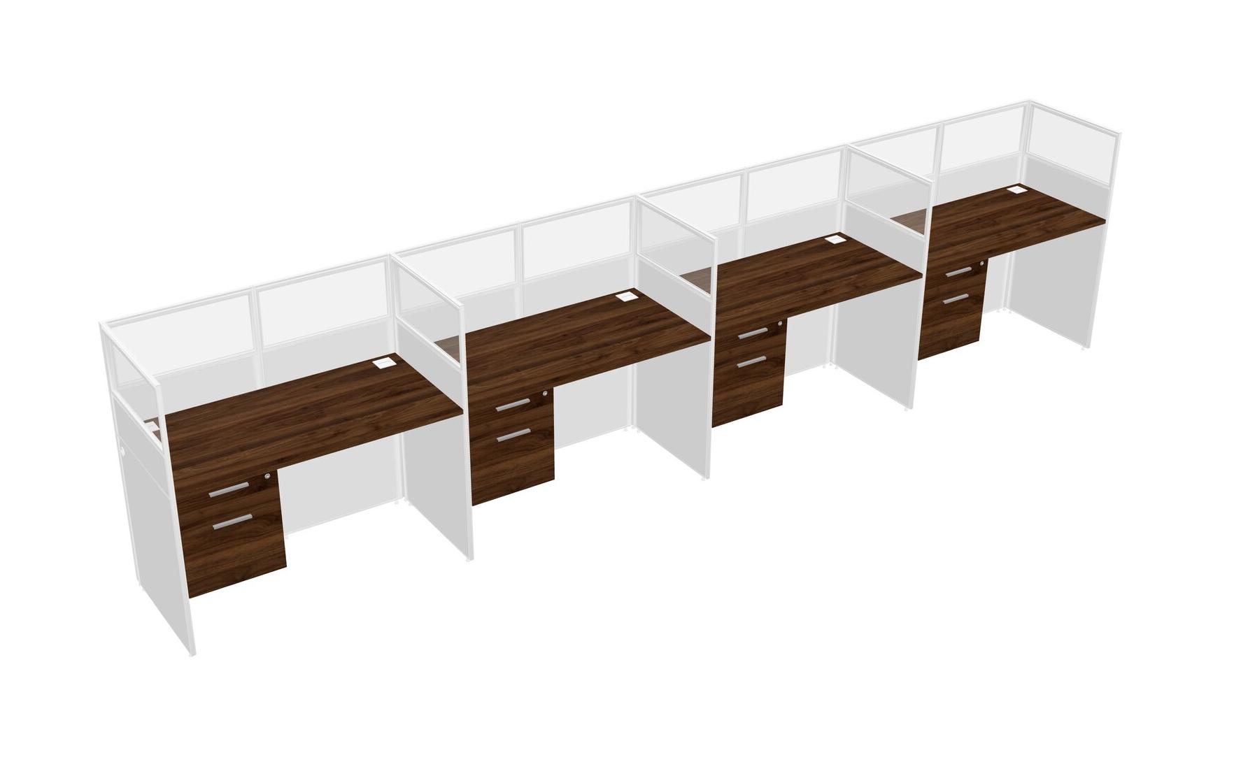 Columbia Walnut Shared Rectangular Office Cubicle Panel System With Hanging Drawers For 4 Persons