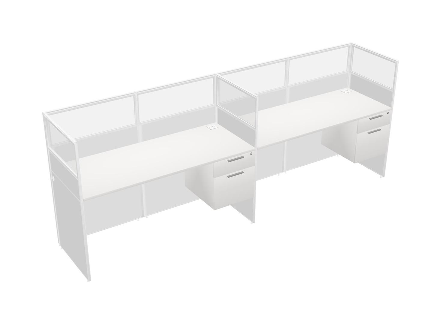 White Shared Rectangular Office Cubicle Panel System With Hanging Drawers For 2 Persons