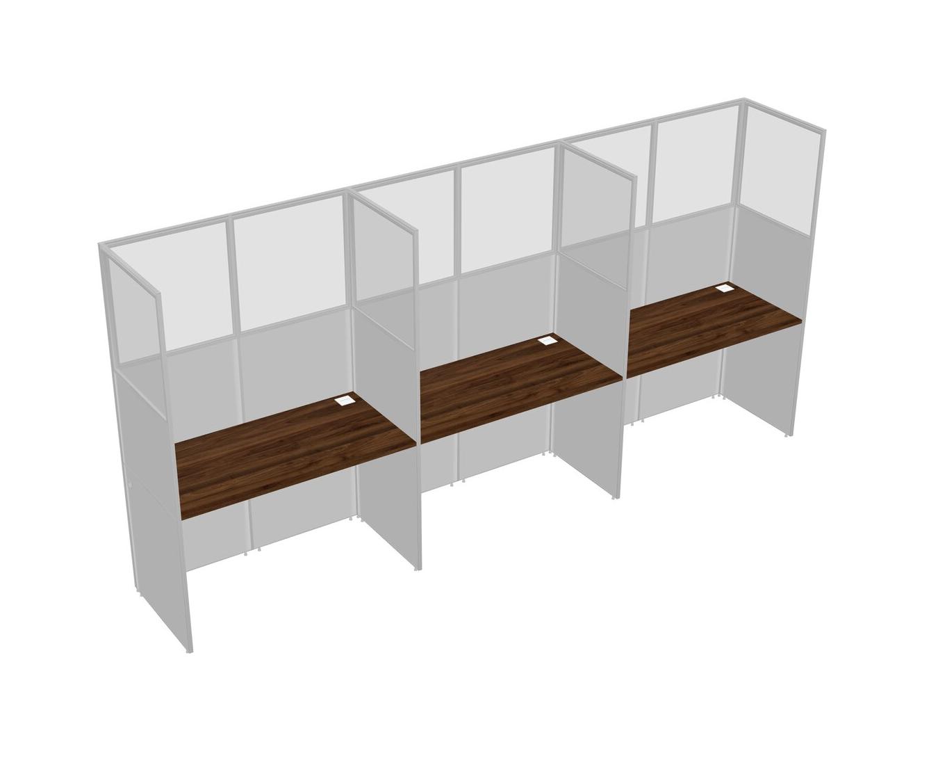 Columbia Walnut Shared Rectangular Office Cubicle Panel System For 3 Persons