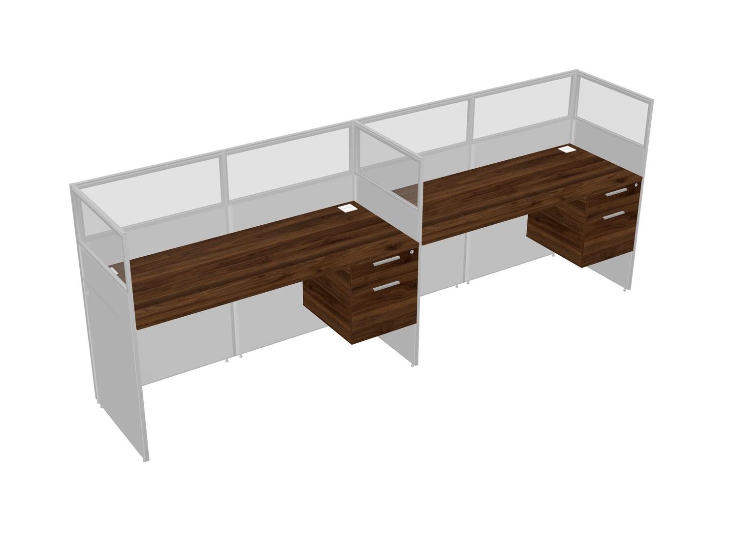 Columbia Walnut Shared Rectangular Office Cubicle Panel System With Hanging Drawers For 2 Persons