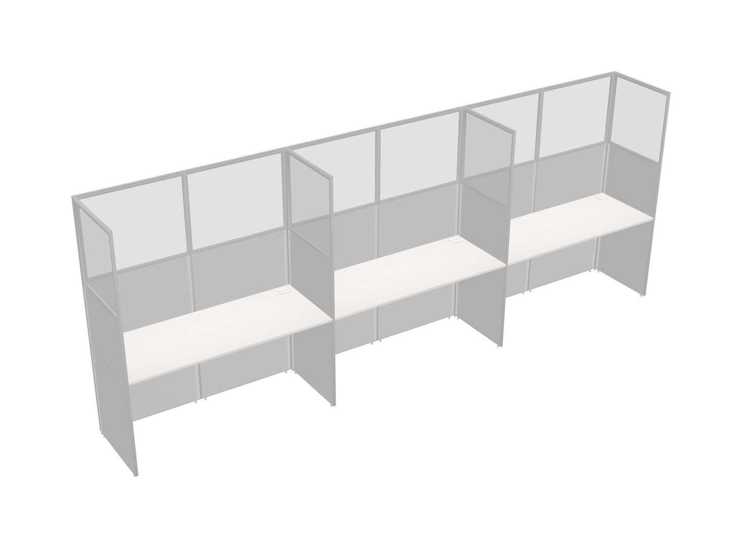 White Shared Rectangular Office Cubicle Panel System For 3 Persons