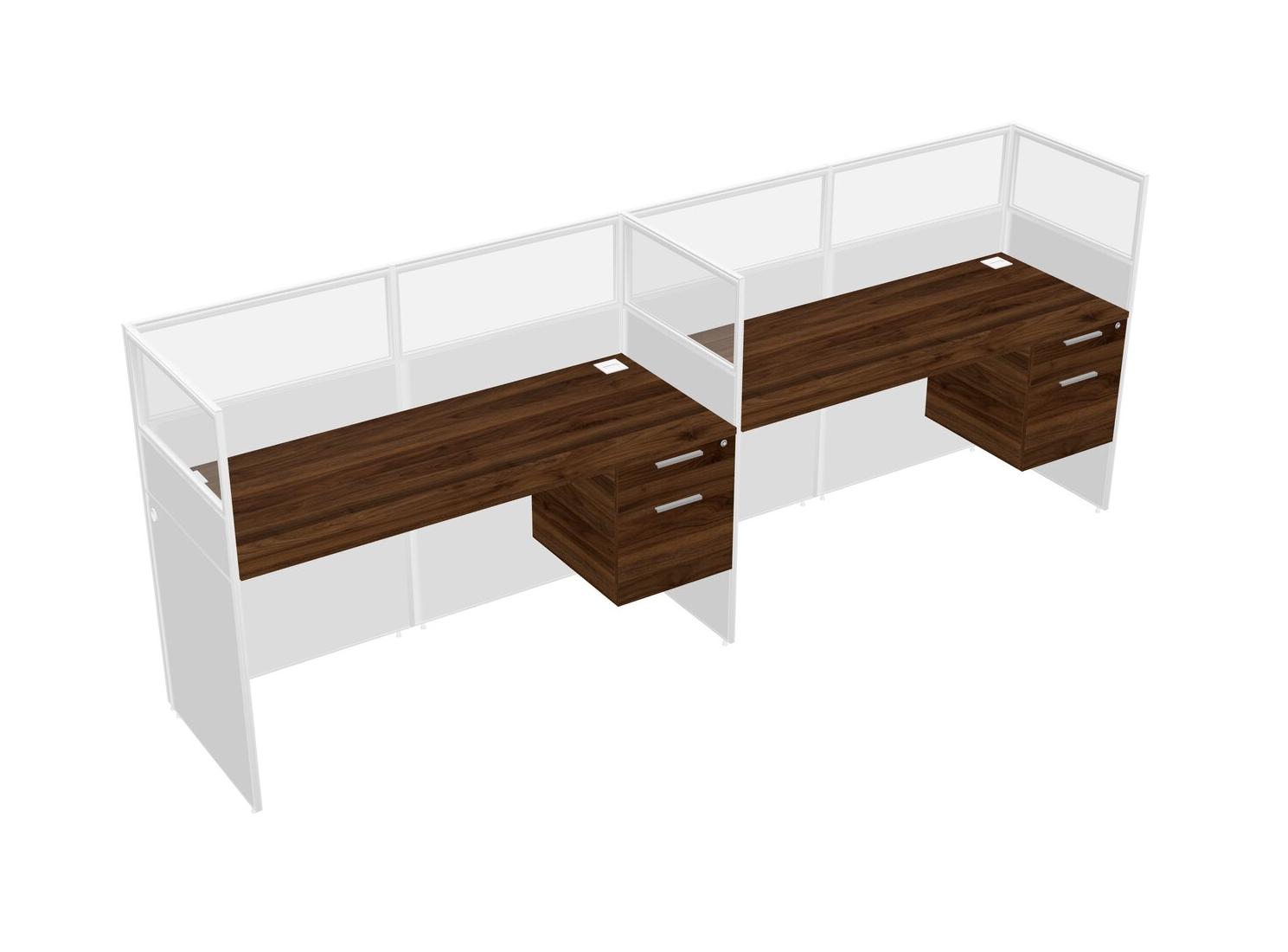 Columbia Walnut Shared Rectangular Office Cubicle Panel System With Hanging Drawers For 2 Persons