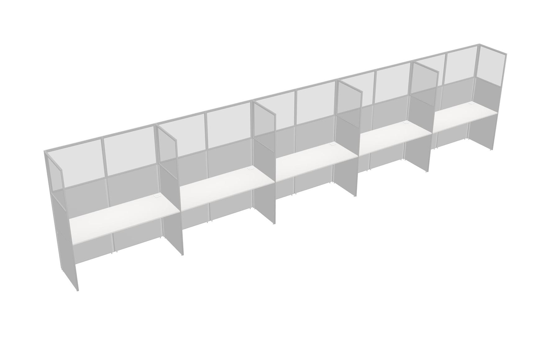 White Shared Rectangular Office Cubicle Panel System For 5 Persons