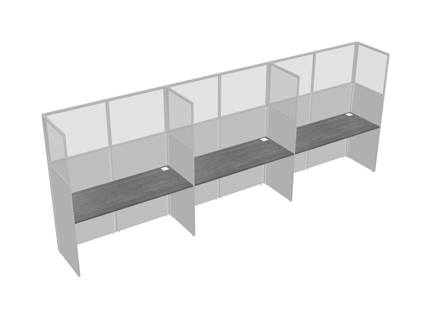 Grey Shared Rectangular Office Cubicle Panel System For 3 Persons