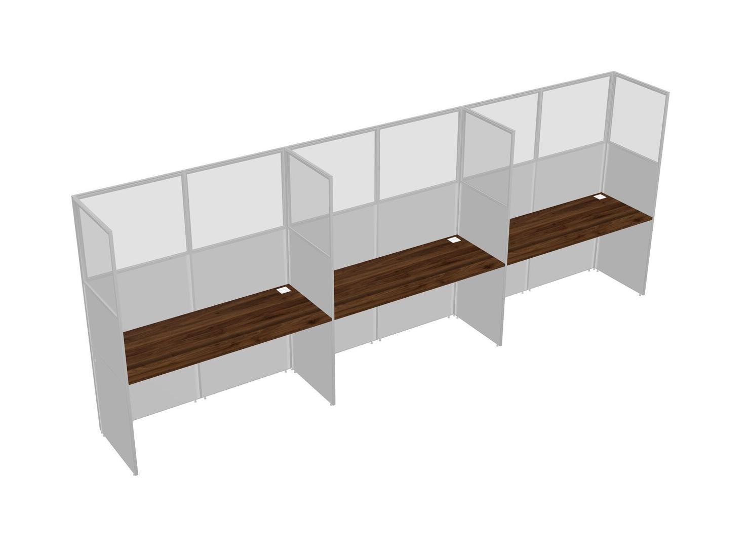 Columbia Walnut Shared Rectangular Office Cubicle Panel System For 3 Persons