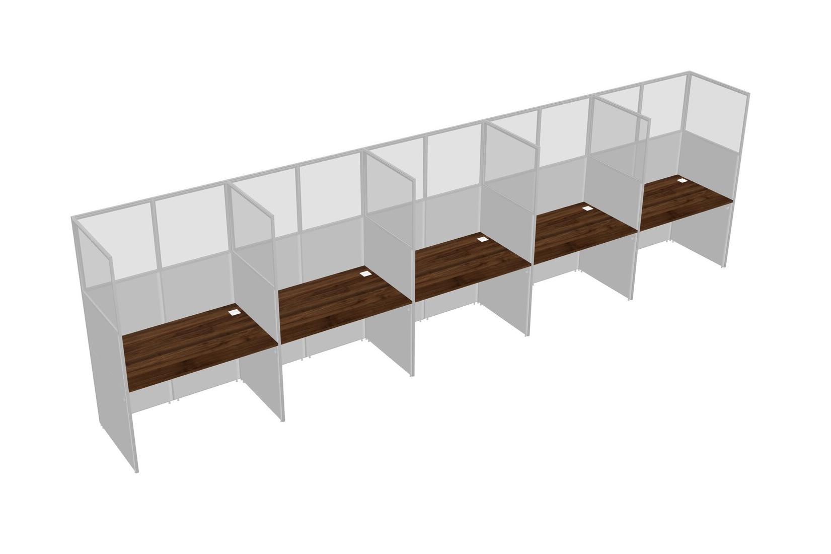 Columbia Walnut Shared Rectangular Office Cubicle Panel System For 5 Persons