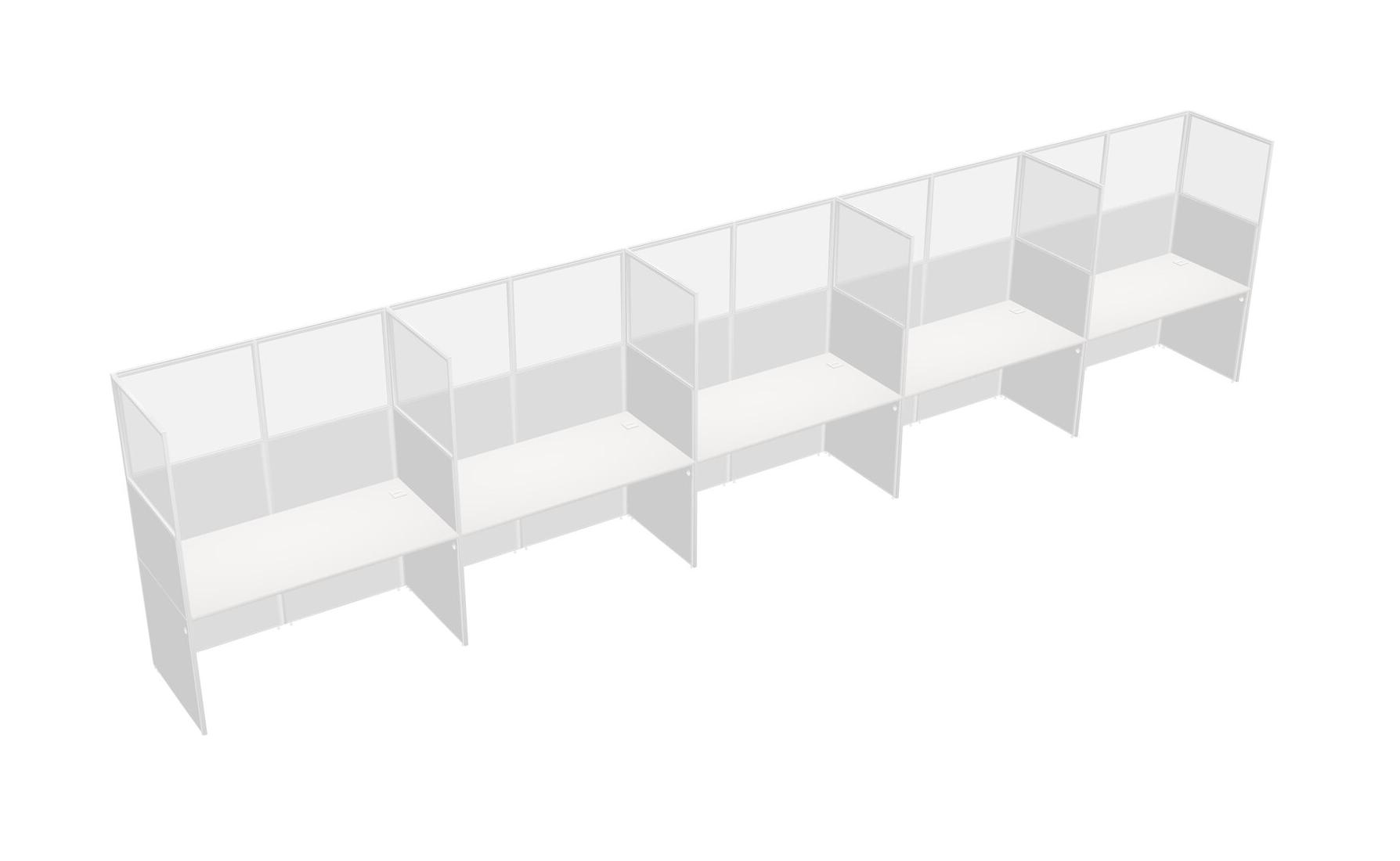 White Shared Rectangular Office Cubicle Panel System For 5 Persons