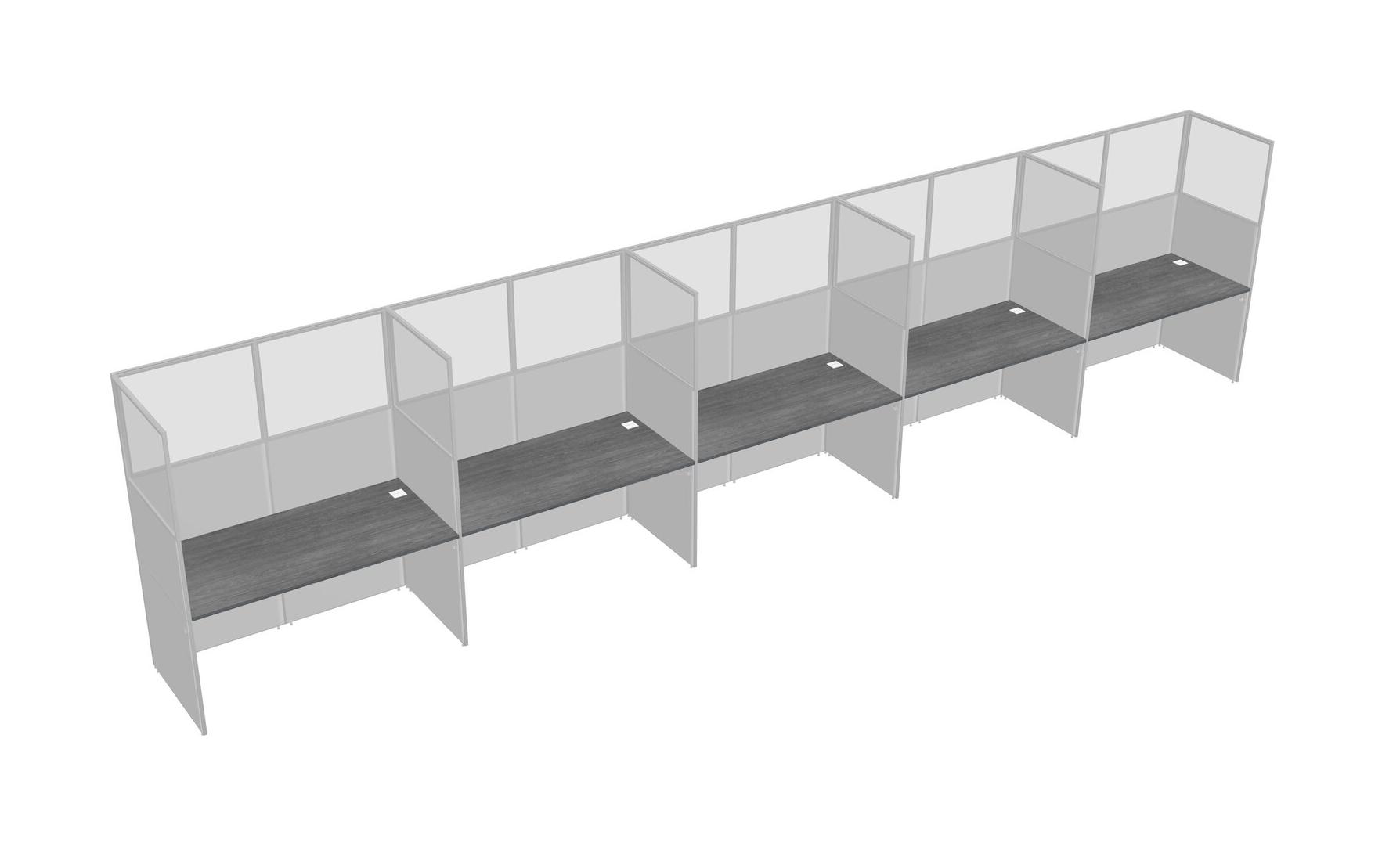 Grey Shared Rectangular Office Cubicle Panel System For 5 Persons