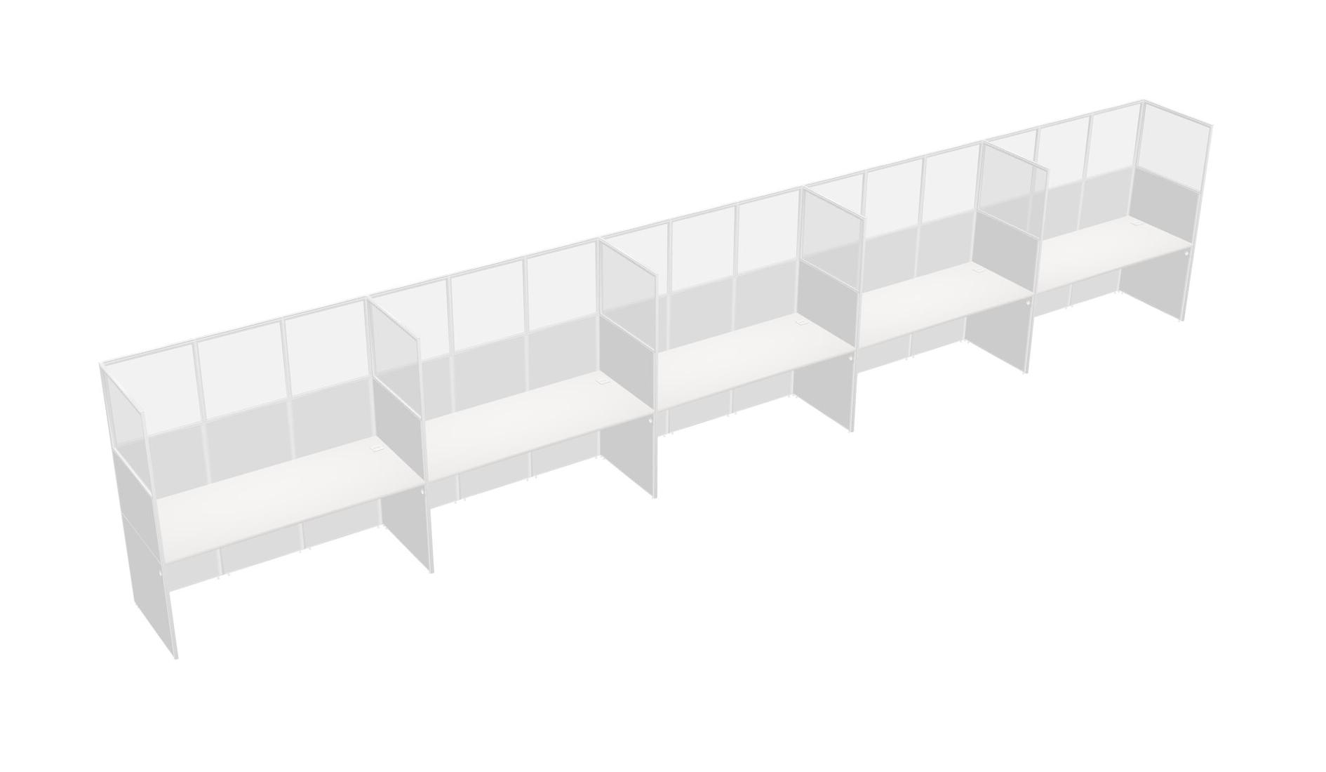 White Shared Rectangular Office Cubicle Panel System For 5 Persons