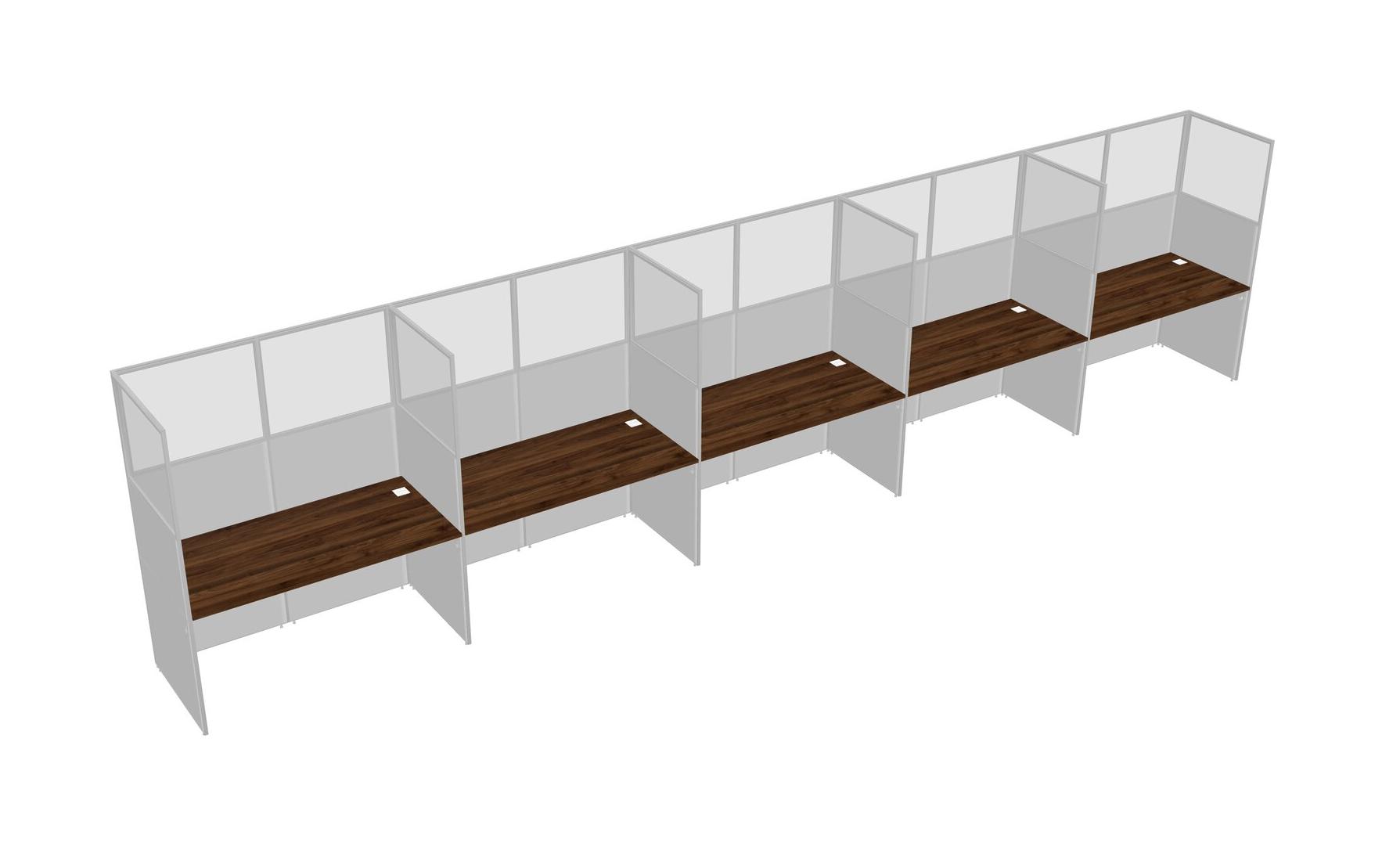 Columbia Walnut Shared Rectangular Office Cubicle Panel System For 5 Persons