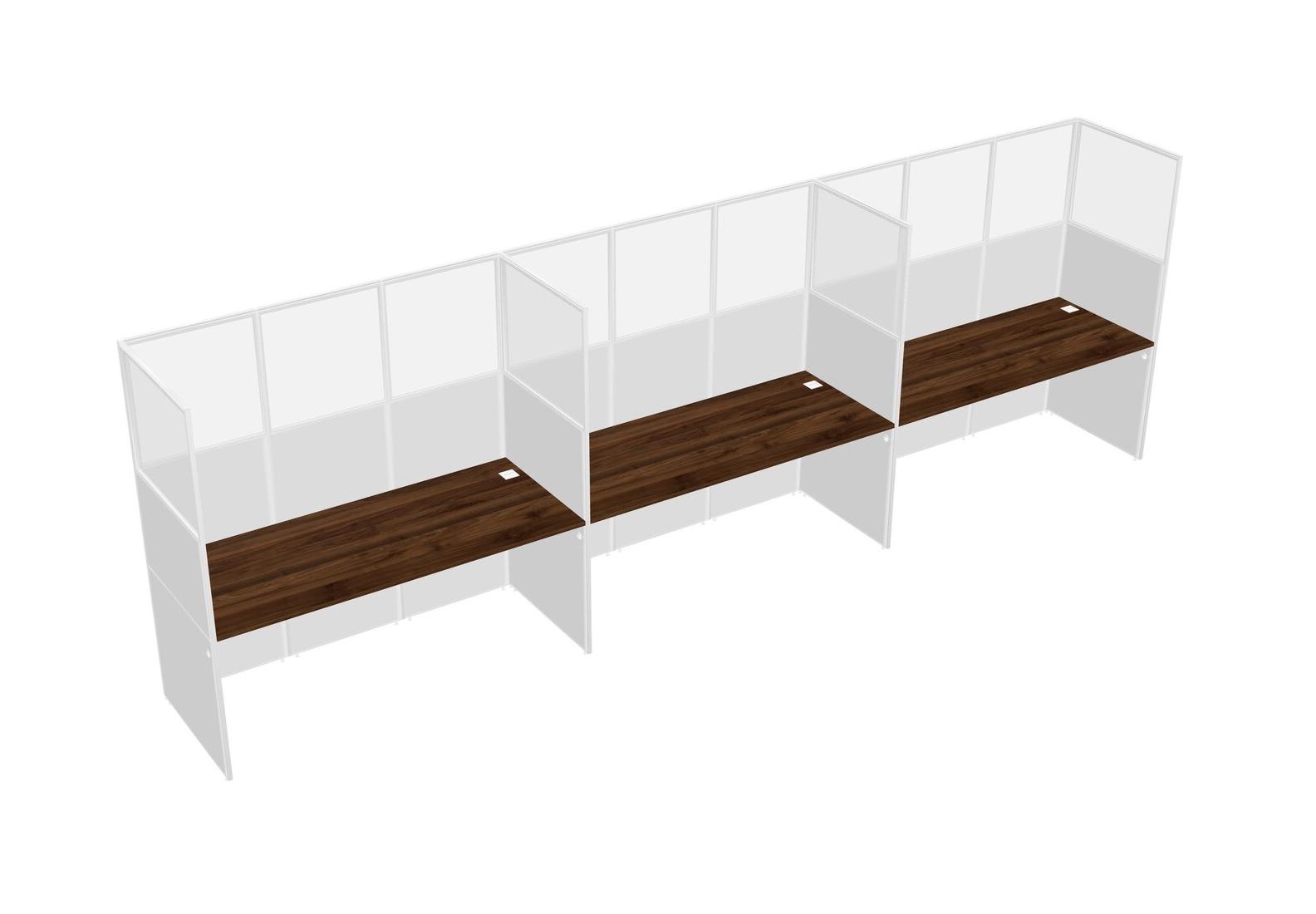 Columbia Walnut Shared Rectangular Office Cubicle Panel System For 3 Persons