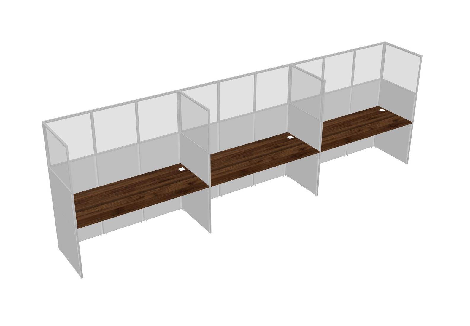 Columbia Walnut Shared Rectangular Office Cubicle Panel System For 3 Persons