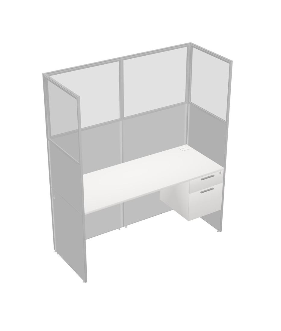 White Shared Rectangular Office Cubicle Panel System With Hanging Drawers For 1 Persons